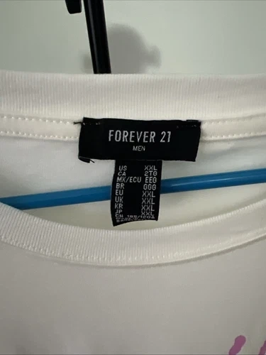 Crafted for comfort and style, this men's T-shirt from Forever 21 is a versatile addition to any wardrobe. The white cotton fabric ensures breathability and ease of care, being machine washable for your convenience. With a regular fit and short sleeves, it offers a classic look that's perfect for outdoor adventures or casual outings. The shirt features a distinctive graphic print that adds a touch of personality to the piece, while the crew neck design keeps the silhouette clean and timeless. Made in Bangladesh between 2020 and 2029.