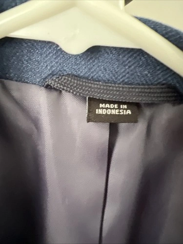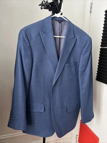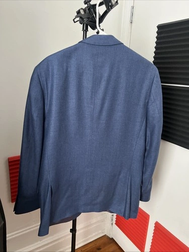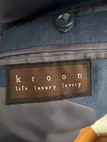 Classic men's blazer by Kroon in a clean blue color. Details: Brand: Kroon, Size: Men’s 40R, Fit/Style: Chaz Modern, Fabric: 75% Wool / 15% Linen / 10% Silk, Care: Professional dry clean only, Made in Indonesia. Condition: Pre-owned, good condition (see photos).
