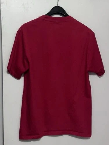 Custom men's T-shirt in size M. Features a regular fit, crew neck, and short sleeves. Made from cotton, the shirt is a solid red color. Perfect for casual wear, this T-shirt is comfortable and has a classic style suitable for everyday wear.