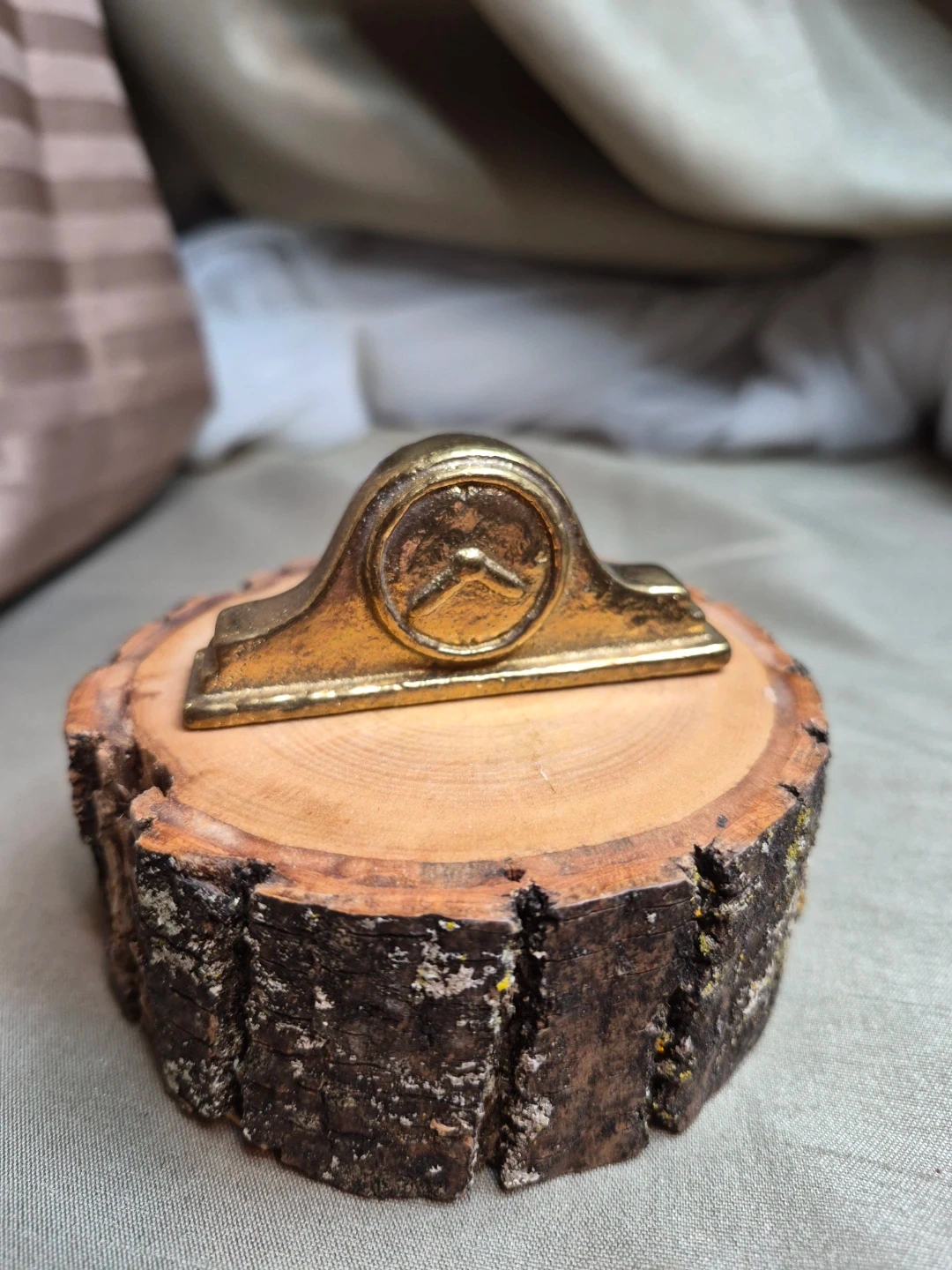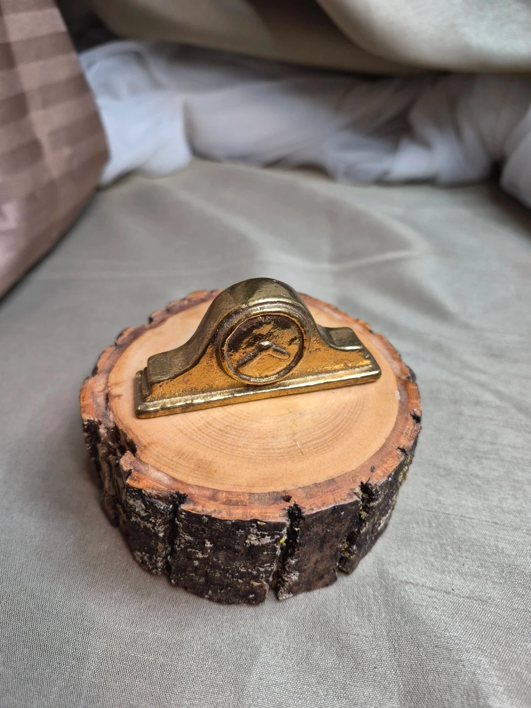2 1/2" x 1' Solid Brass Vintage Mantal Clock Figurine Excellent Condition please see all pictures