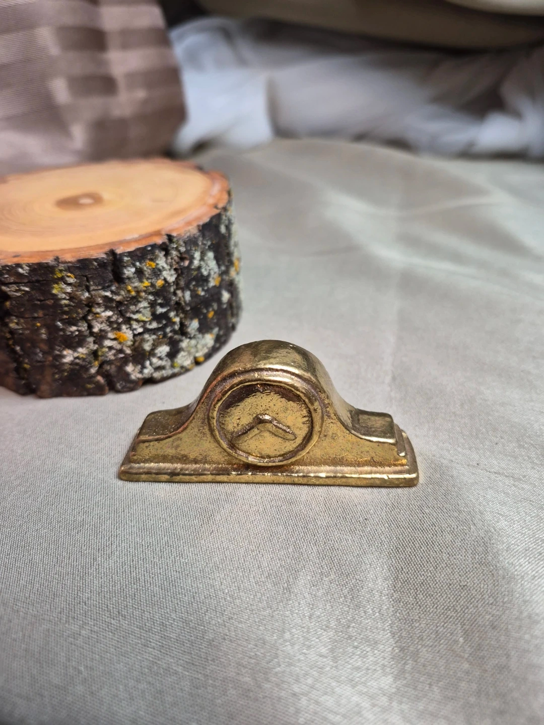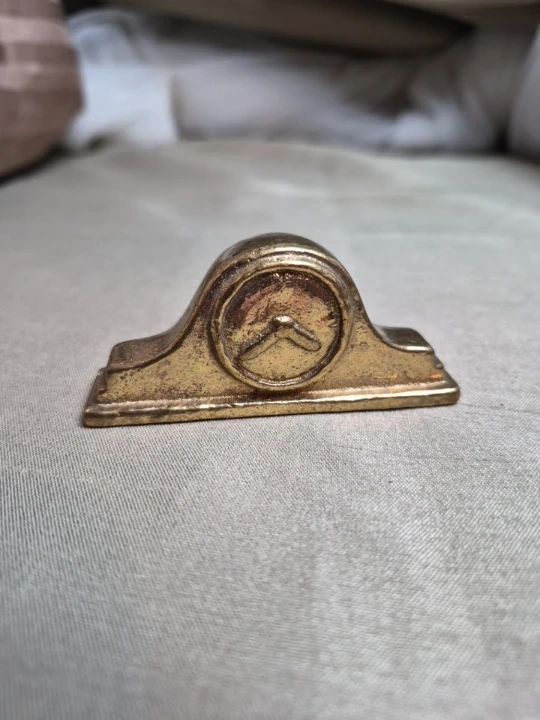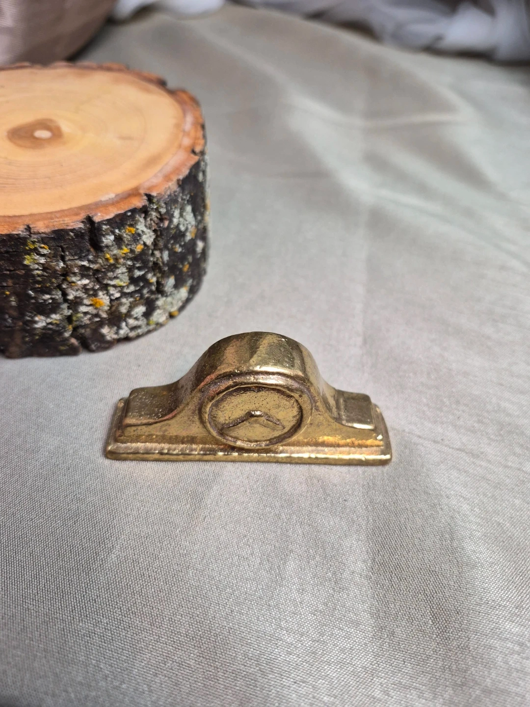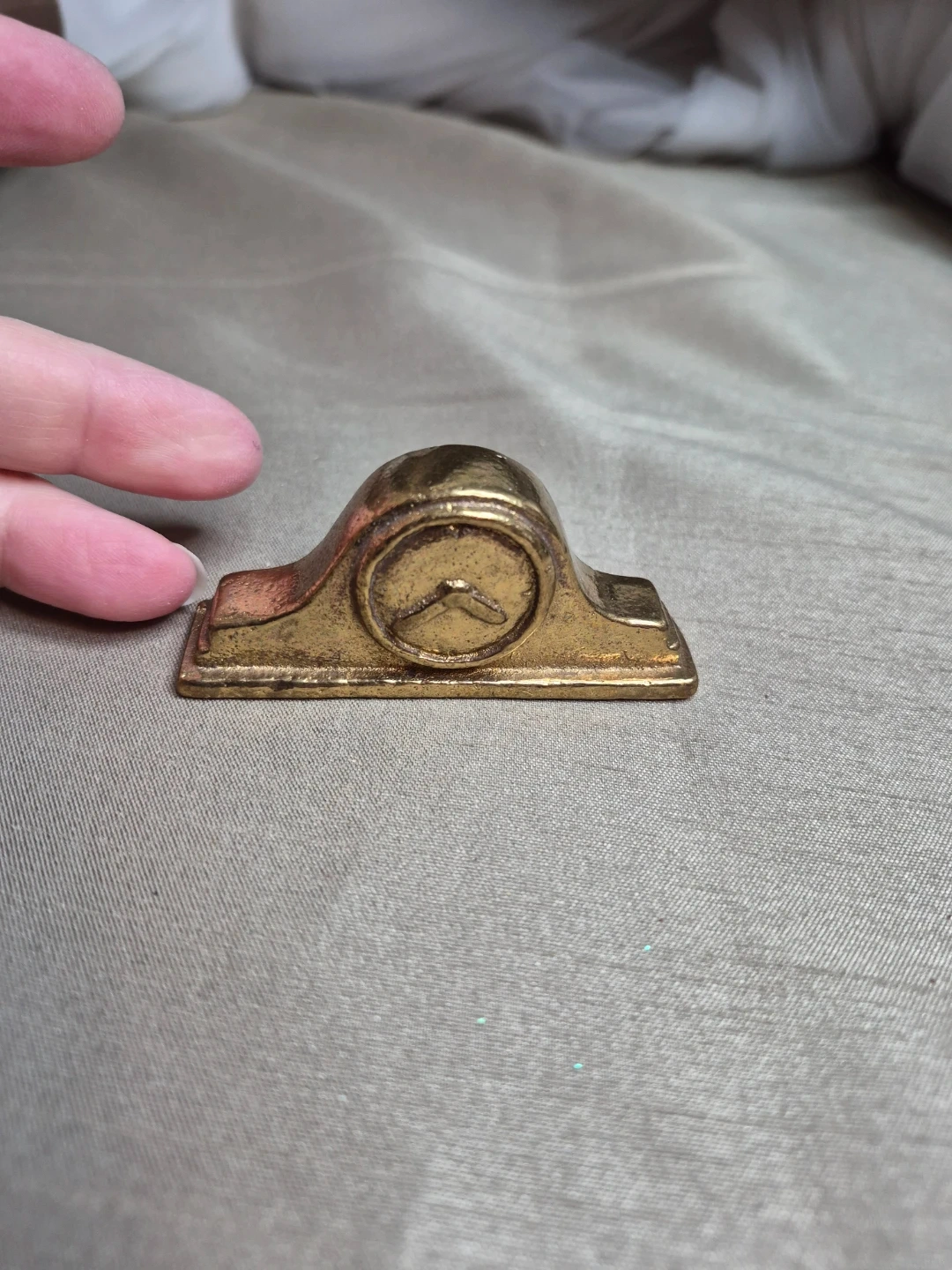 2 1/2" x 1' Solid Brass Vintage Mantal Clock Figurine Excellent Condition please see all pictures