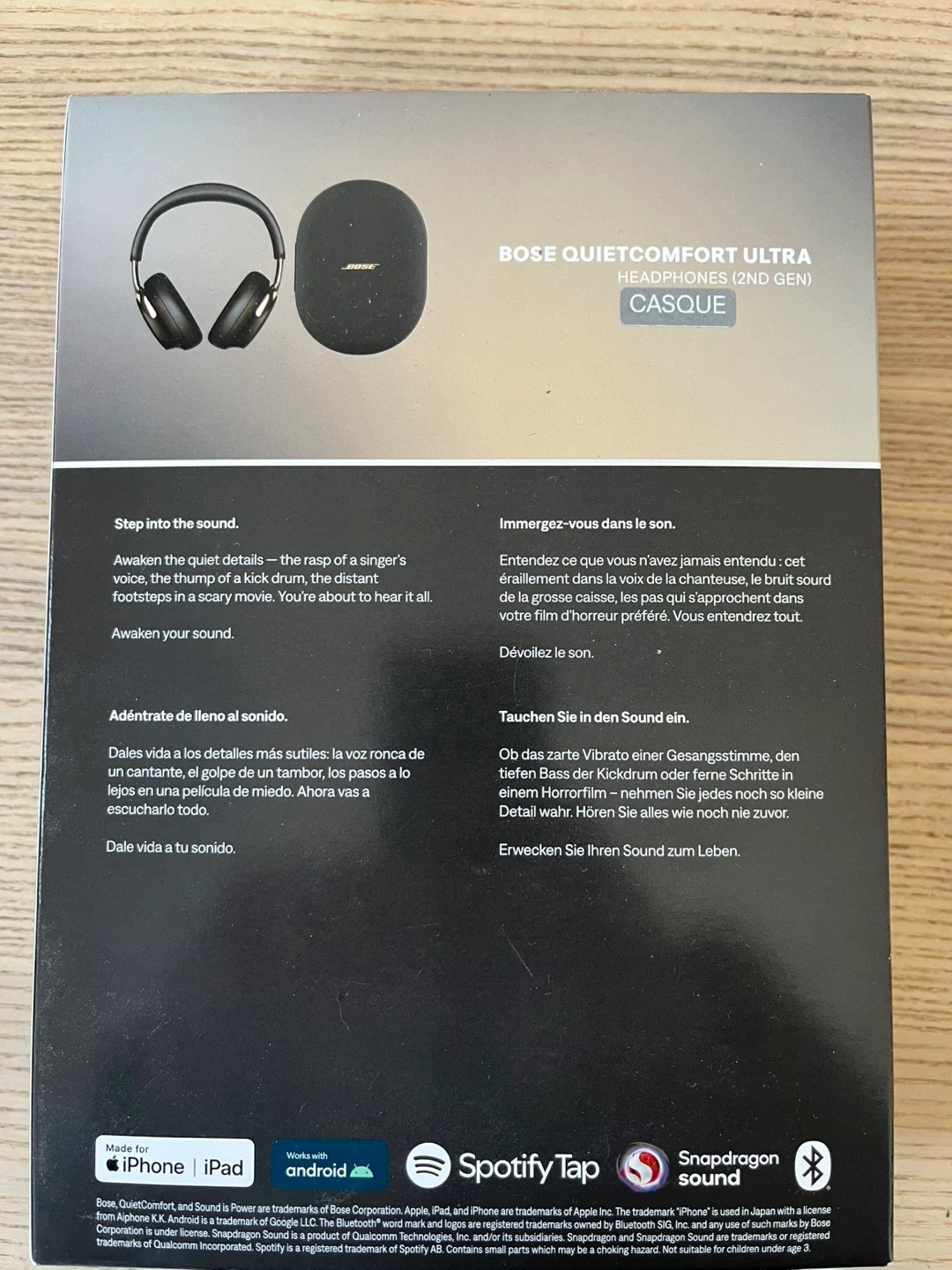 These Bose QuietComfort Ultra headphones offer noise cancelling. They're the 2nd generation model in Desert Gold. Includes original box and charging cable.