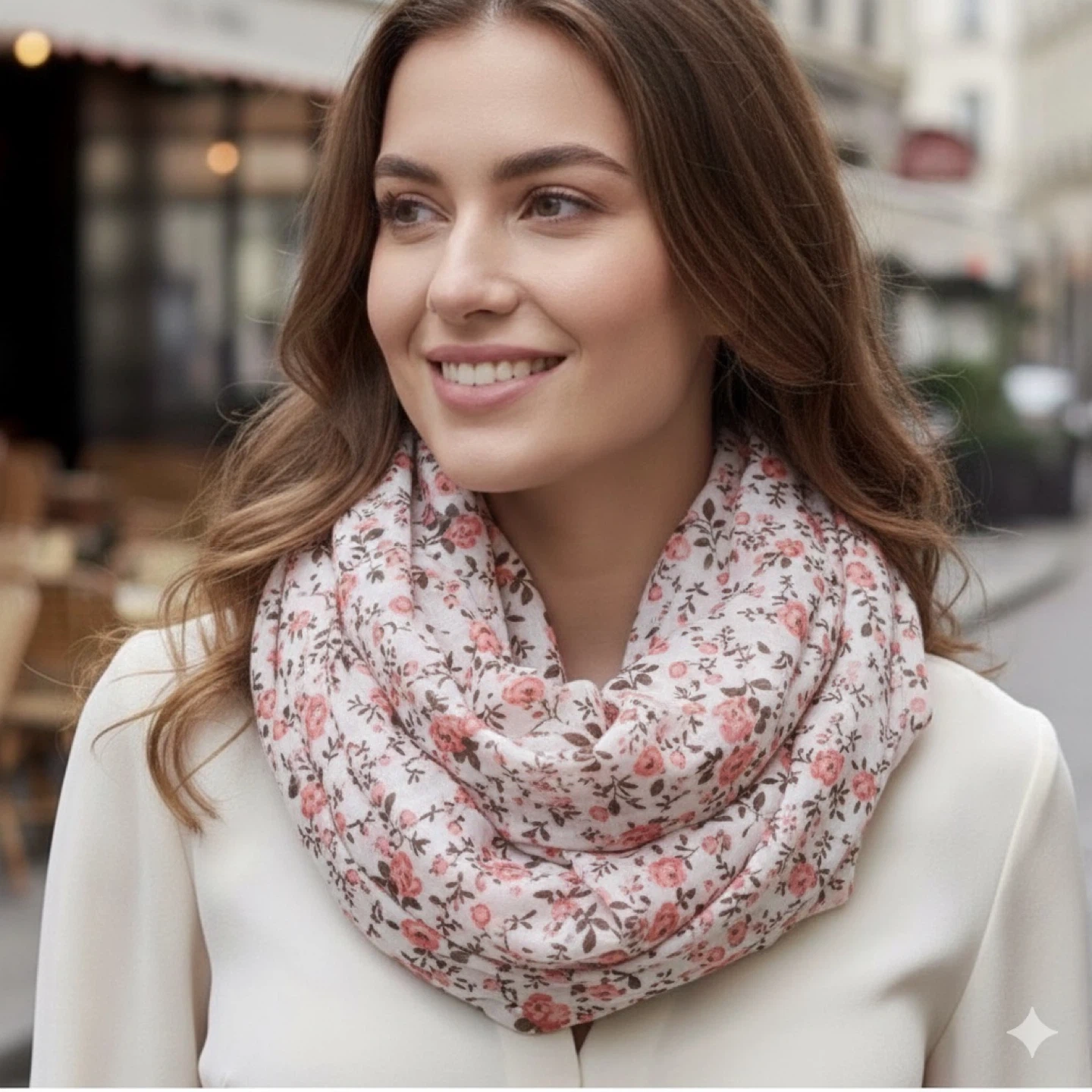 Add a feminine touch to your look with this MyStyle lightweight infinity scarf featuring a delicate coral and brown floral print. This airy, continuous loop scarf is perfect for layering and adds effortless style to any outfit.