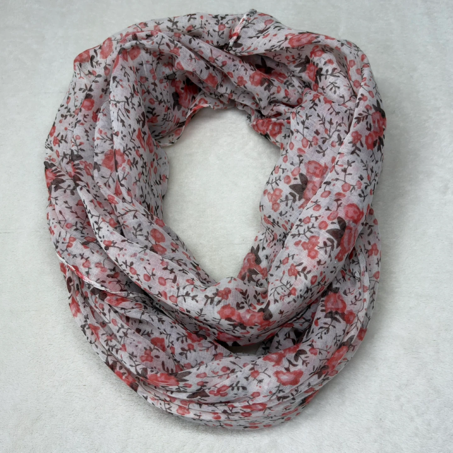 MyStyle, infinity scarf, floral scarf, coral floral, spring accessory, lightweight scarf, summer scarf, rose print, loop scarf, feminine accessory