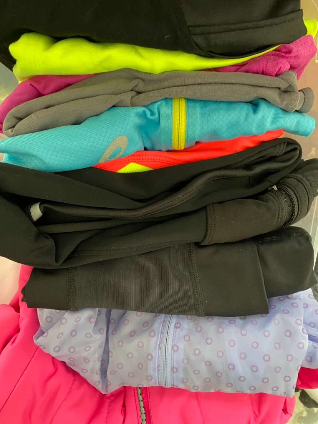 This bundle is good for a runner, cyclist or avid gym goer. It includes a variety of athletic tops, jackets, and bottoms from brands like Nike, lululemon, the north face. ASICS, Brooks and more. There are 10 pcs in total. The items are suitable for running and workouts indoors or outdoors. Most items are a size small a couple are a size med but fit me more like a small. Please refer to the pictures for more details as style and conditions.