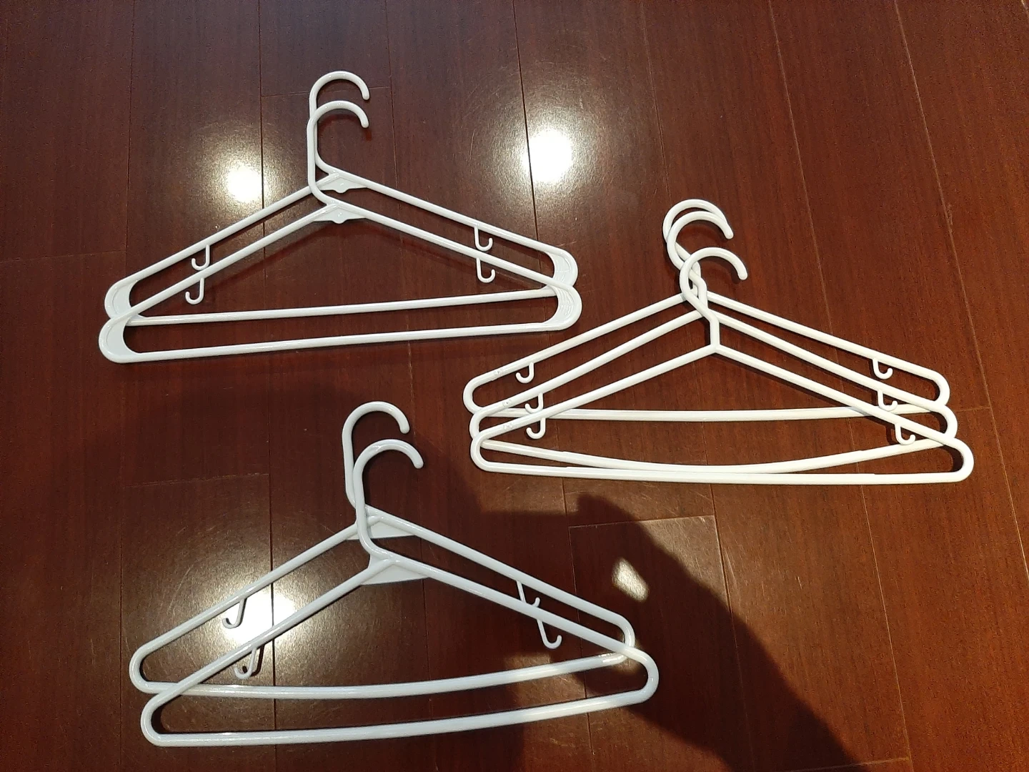 7 plastic clothes hangers.