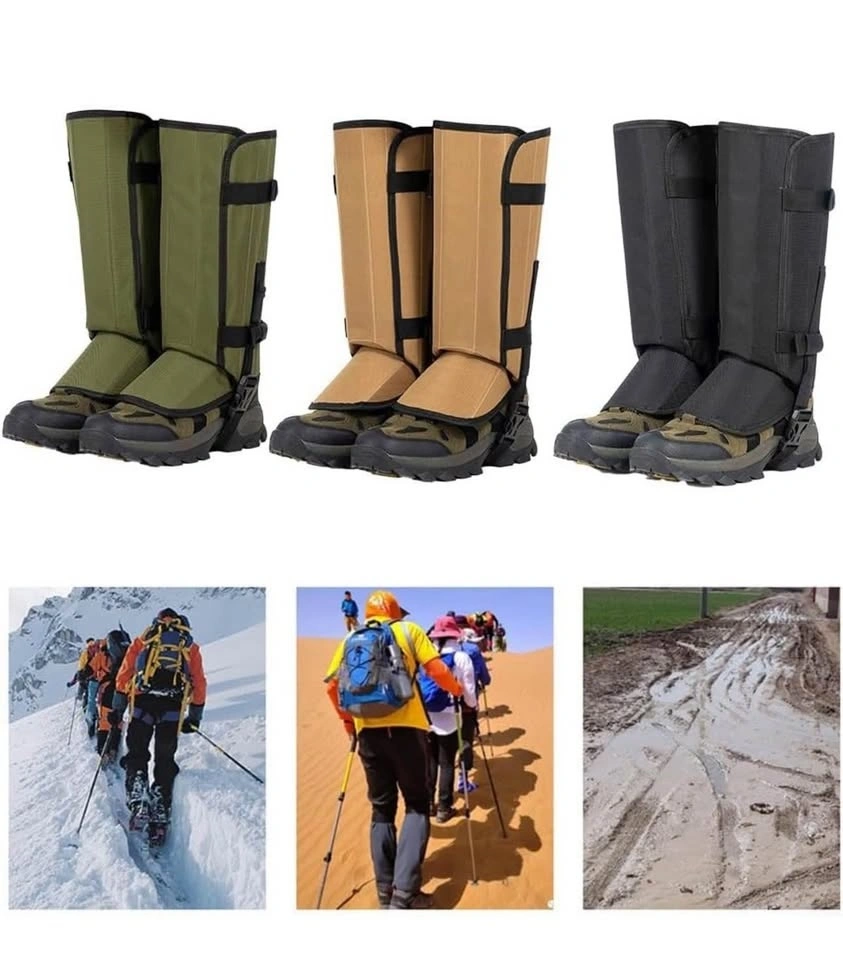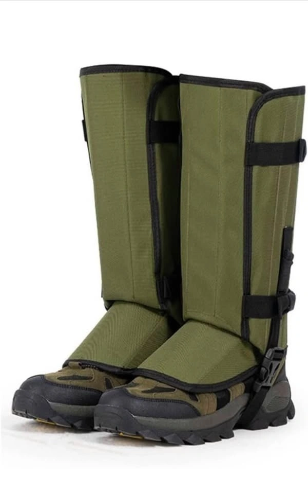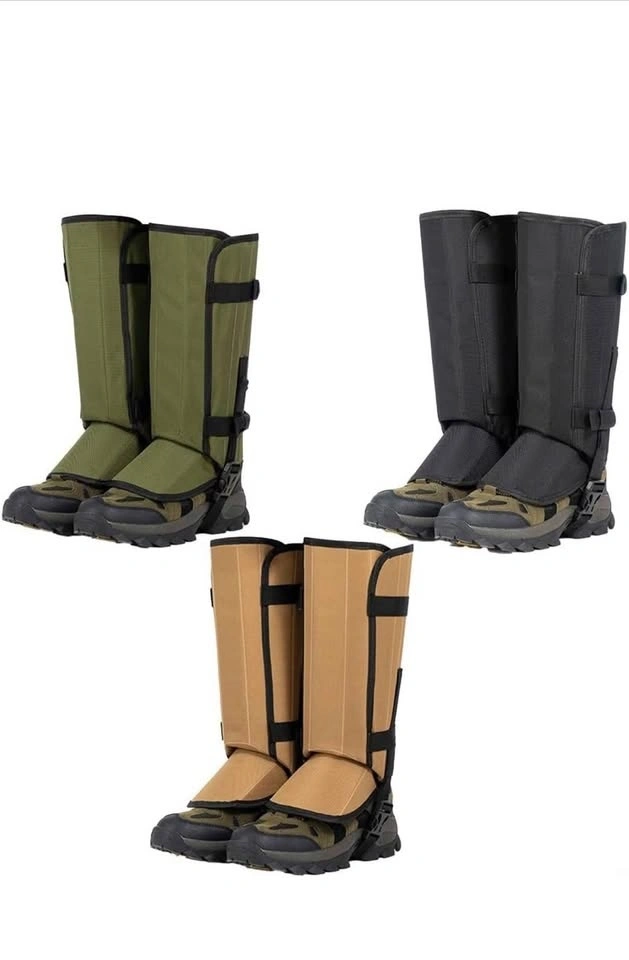 These leg gaiters are made of waterproof fabric. The upper part is a three-layer composite nylon cloth, and the lower part is 500D waterproof cowhide cloth. They effectively prevent snow, dirt, wind, debris, rocks, rain, water, and mud from entering your boots. Designed with adjustable straps, they are convenient to put on and take off. Suitable for sandy, snowy, cold, and windy weather, these versatile leg gaiters offer protection for activities like hunting, mountain climbing, and hiking, and can also provide protection against snake bites.