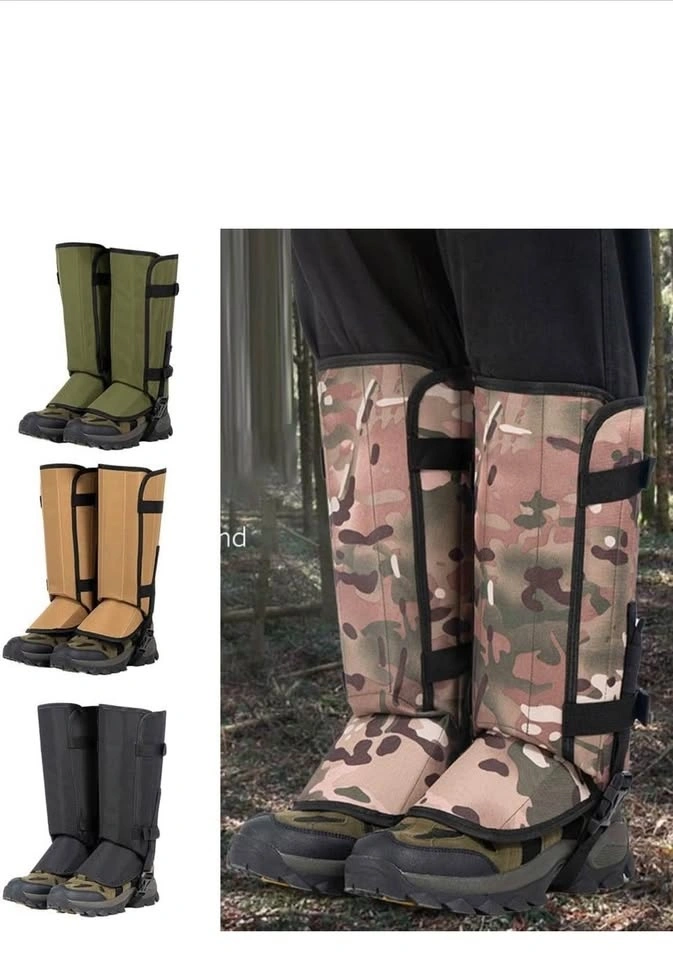 These leg gaiters are made of waterproof fabric. The upper part is a three-layer composite nylon cloth, and the lower part is 500D waterproof cowhide cloth. They effectively prevent snow, dirt, wind, debris, rocks, rain, water, and mud from entering your boots. Designed with adjustable straps, they are convenient to put on and take off. Suitable for sandy, snowy, cold, and windy weather, these versatile leg gaiters offer protection for activities like hunting, mountain climbing, and hiking, and can also provide protection against snake bites.
