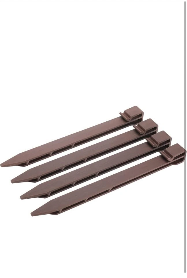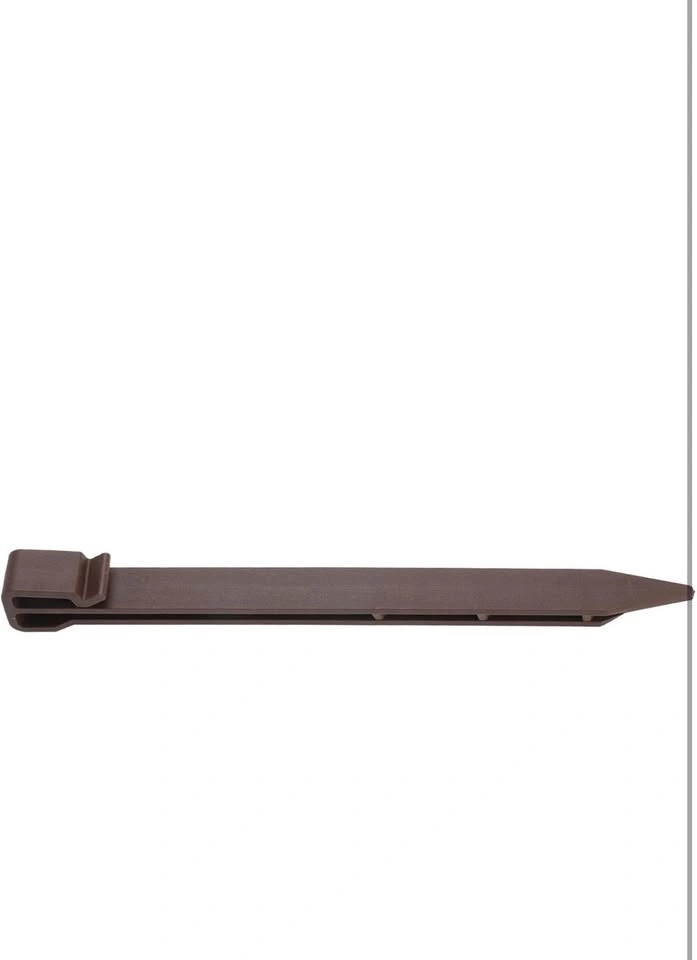Brand new, never used. These are 50 landscape edging stakes made of quality thickened plastic that is anti-aging and durable for long-term use. They are great for fixing landscape edging, tents, weed fabric, turf, tree support, and more. The stakes have a sharp end for easy insertion into the soil and a top bayonet design for use with ropes or partitions. Perfect for DIY projects to create a scenic yard.