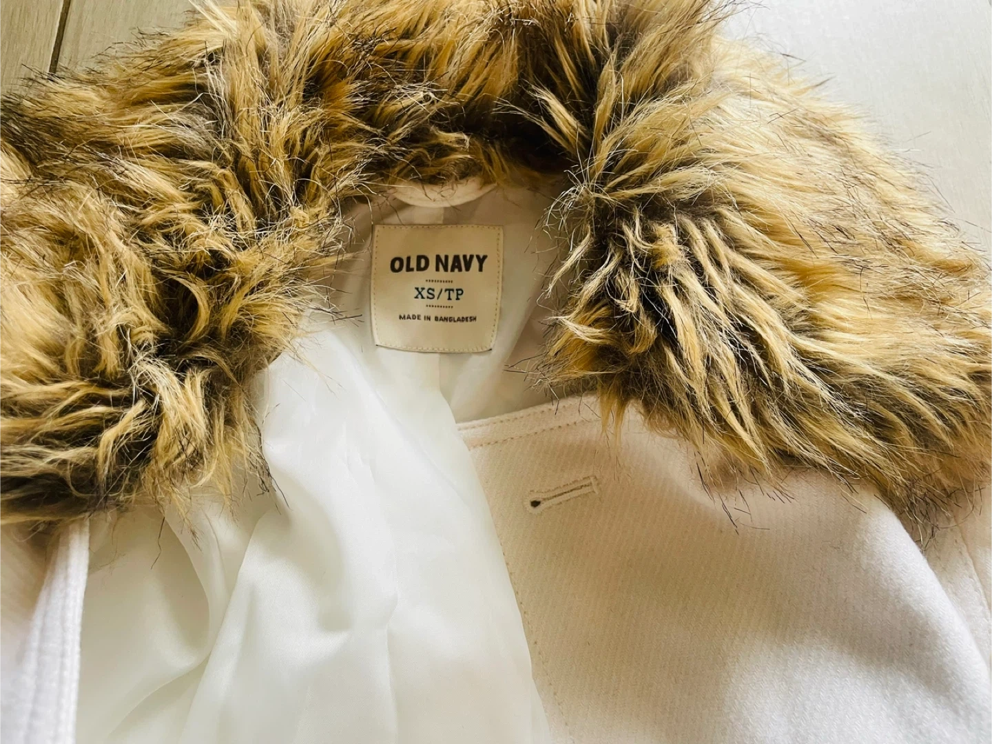 Old Navy Cream Double-Breasted Pea Coat with Faux Fur Trim