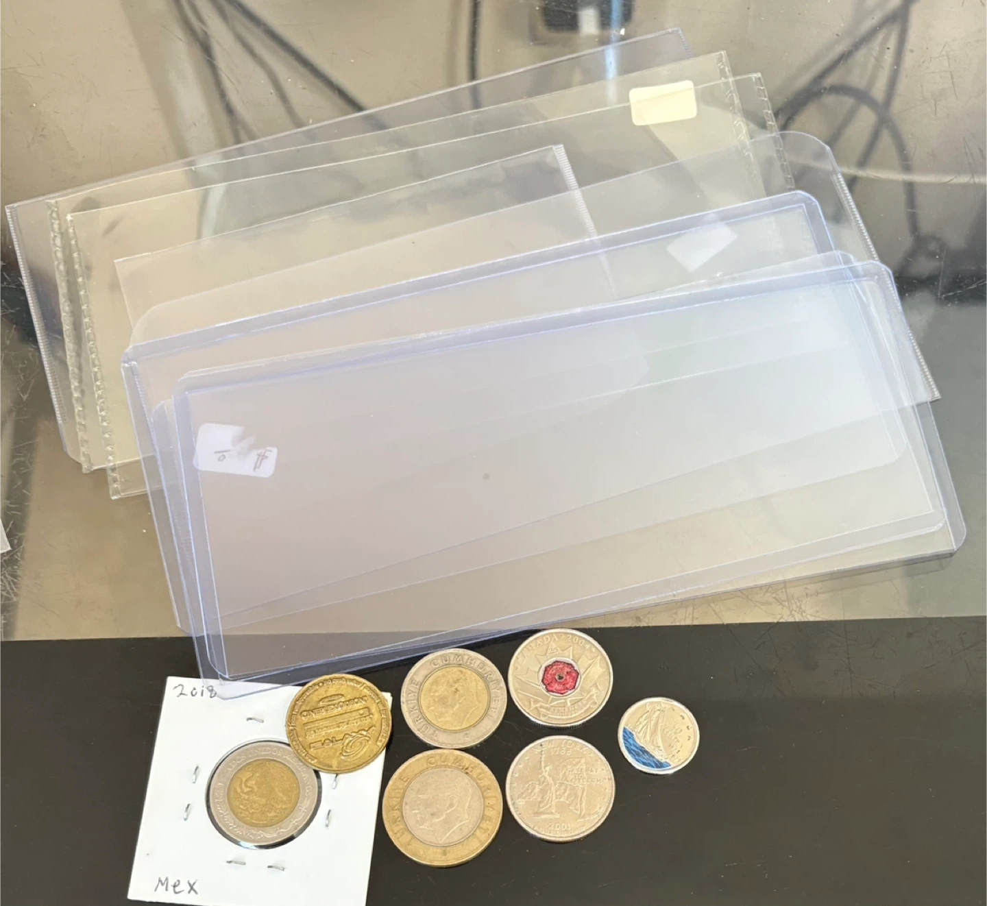 various international banknotes and some loose coins. Some notes are from Egypt, United Arab Emirates, Qatar, Iran, Afghanistan, etc...