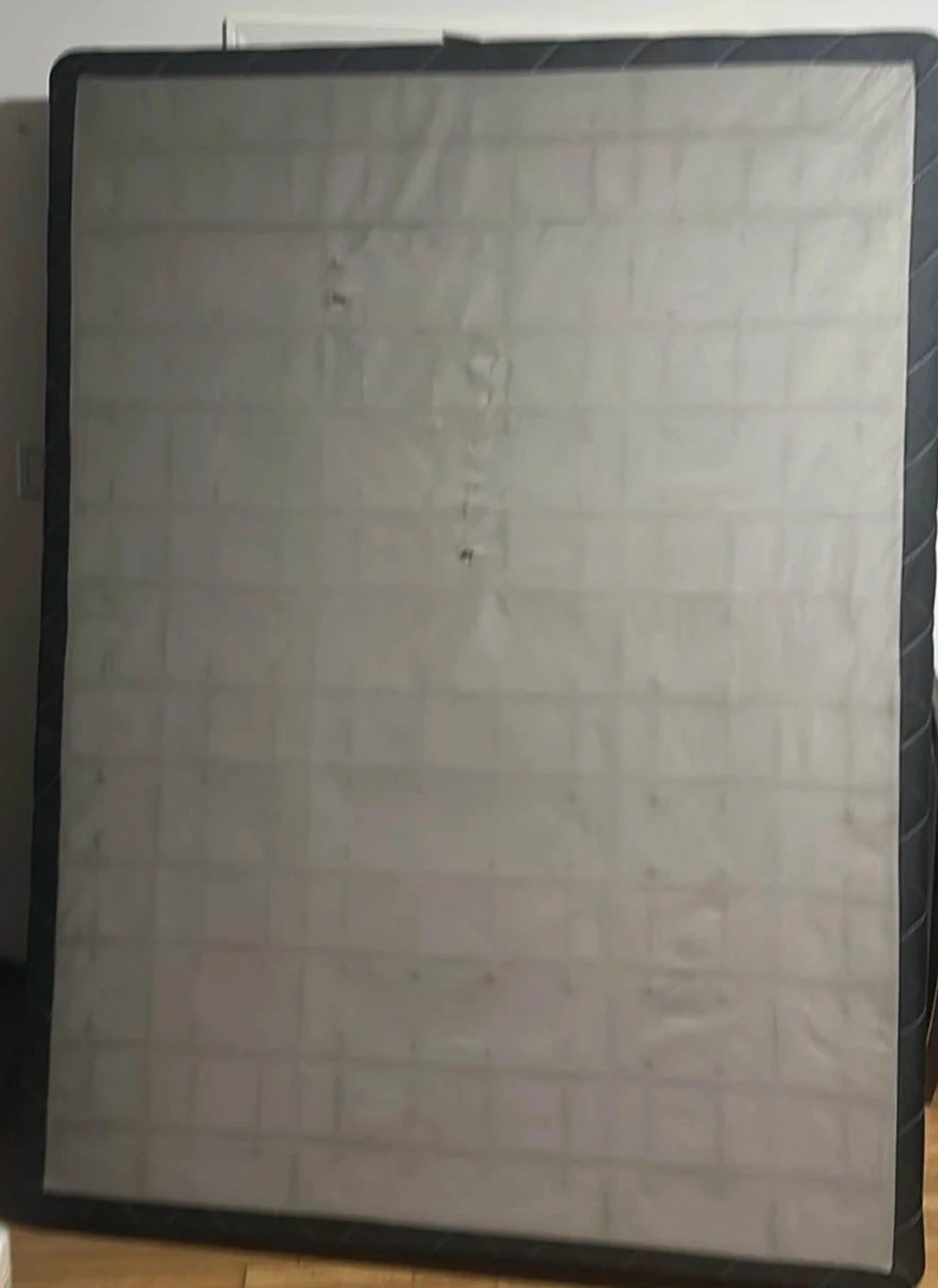 Selling a used queen size box spring. It's in grey fabric with a black trim. In a smoke free and pet free home so need to worry about allergies Ready for a new home!