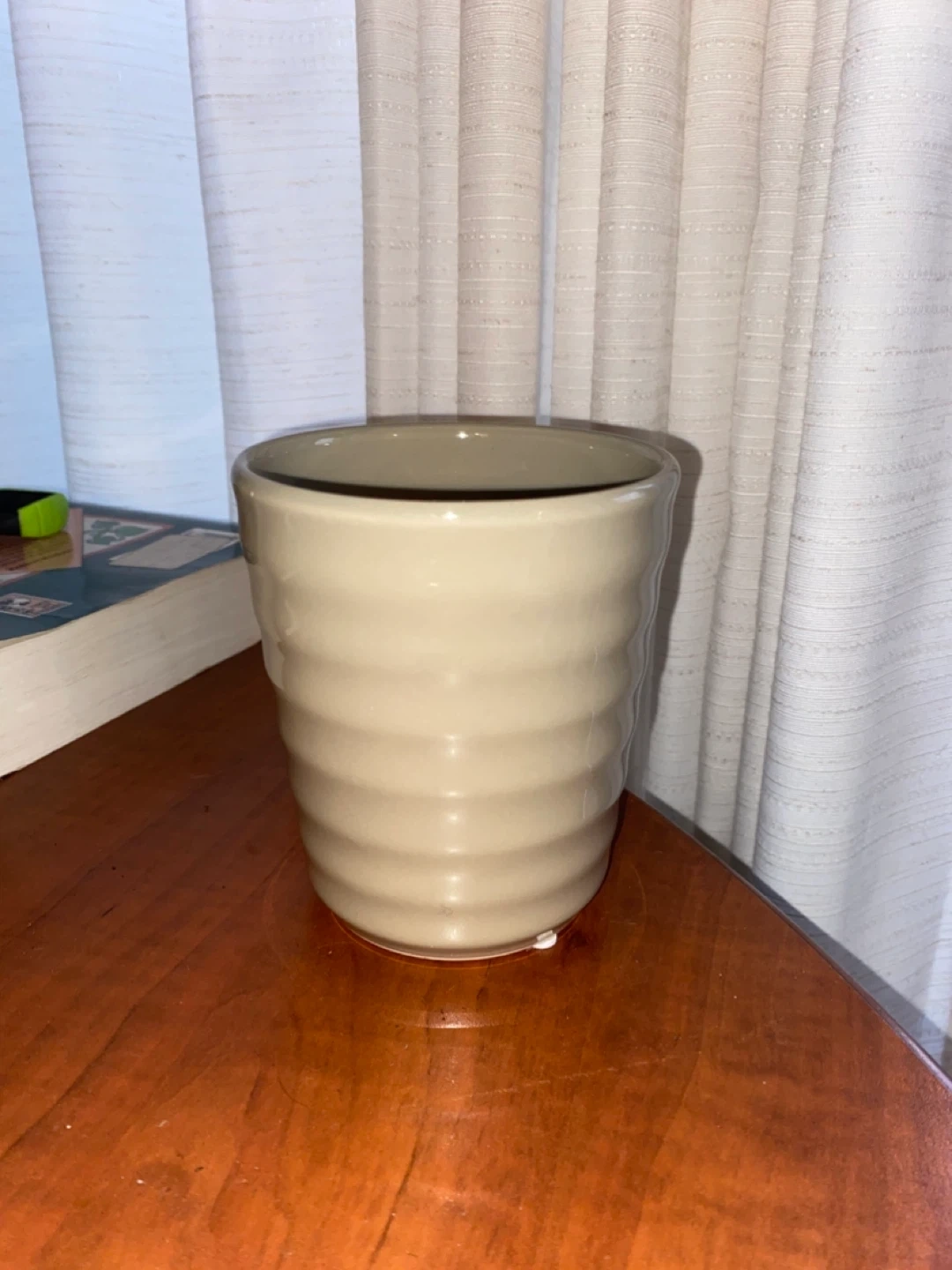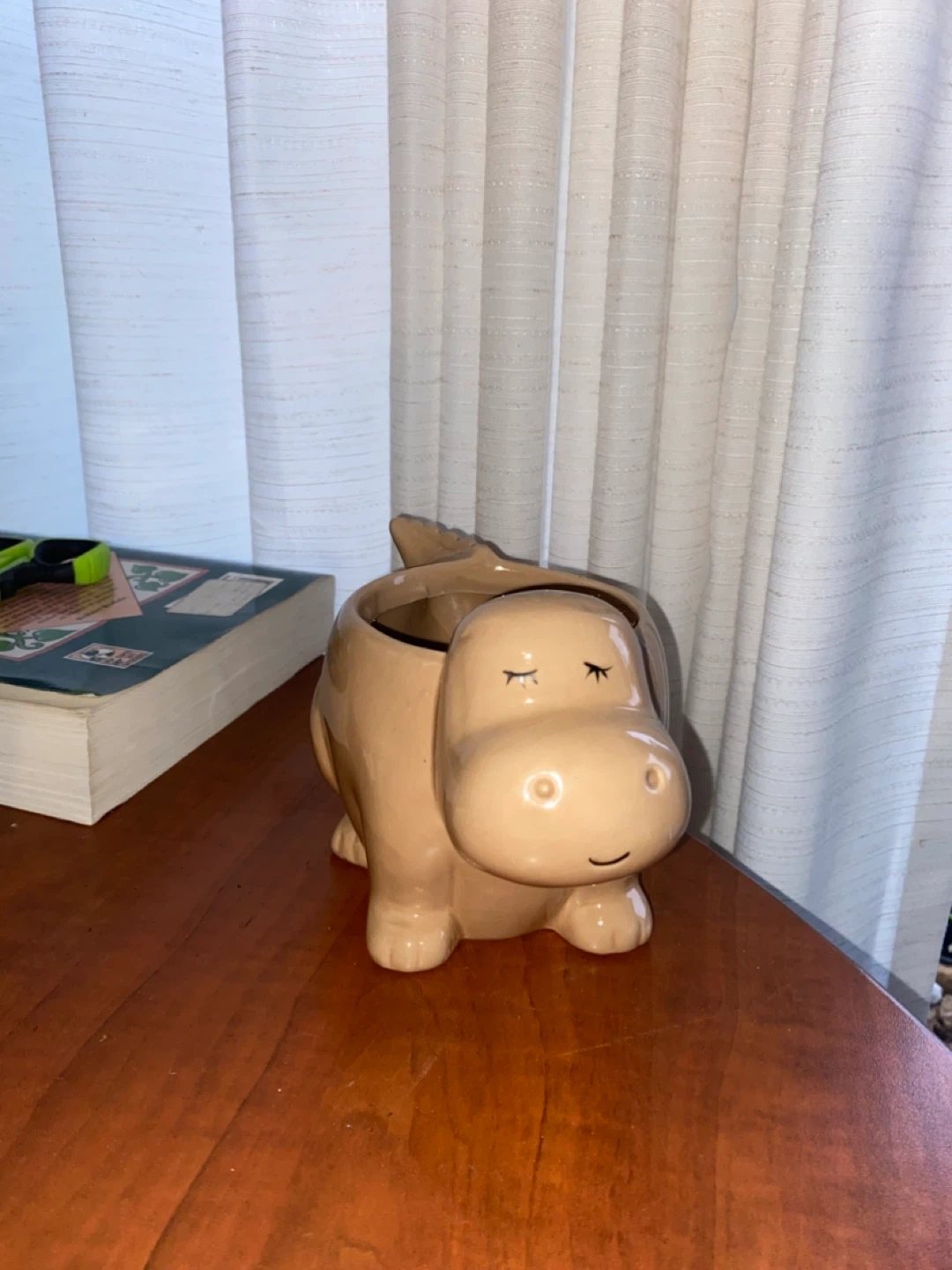 Two ceramic pots for plants or décor. Includes a beige ribbed pot and a cute beige dinosaur -shaped pot. These pots are a lovely neutral addition to any home!