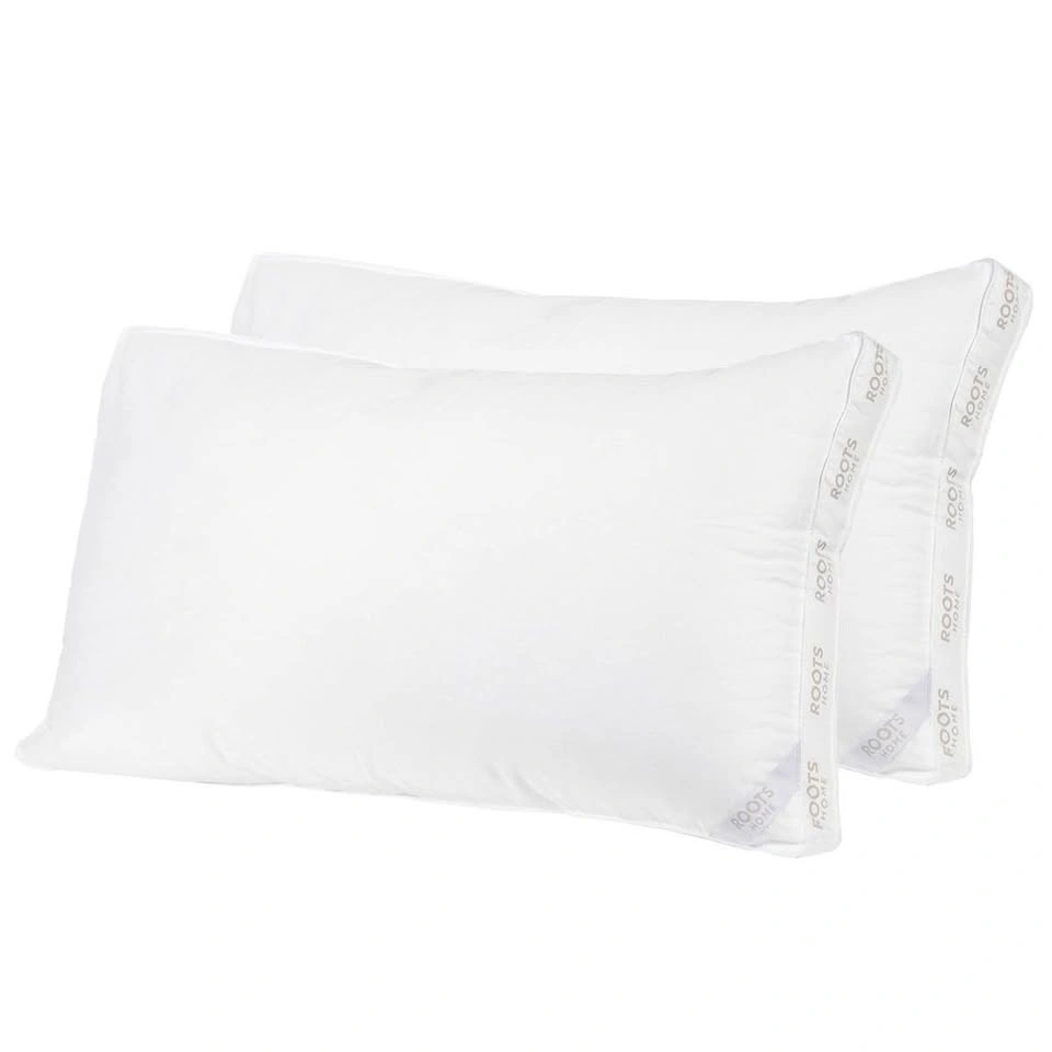 Have 3 sets of 2 available. 100% cotton sateen shell, 300 thread count 100% polyester fill. Hypoallergenic. Finished and filled in Canada. Fill Weight: Queen: 850 g (30 oz.). Dimensions (L × W x H): Queen: 45 cm x 66 cm x 5 cm (18 in. x 26 in. x 2 in.). Care Instructions: Machine wash, cold water. Tumble dry, low heat.