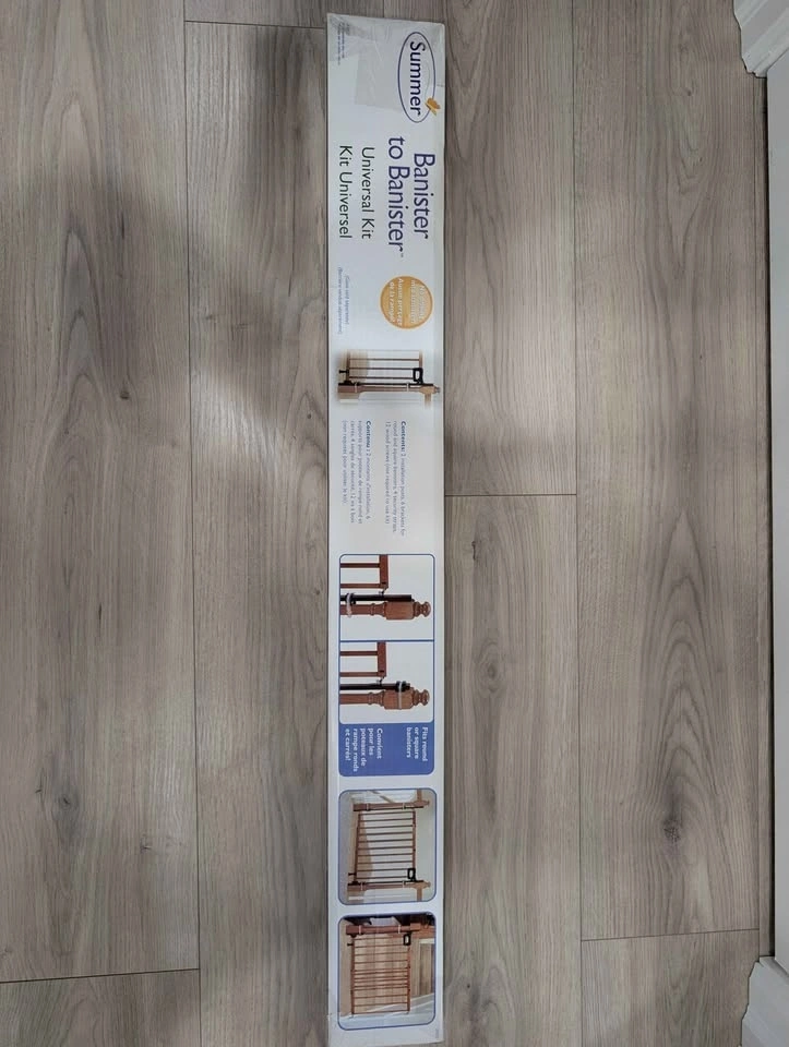 Save your banisters from installation of baby gates, without having to drill into them. You can even use this item for wall to banister installation as well. Check the pictures on the box for more options. Brand new item.