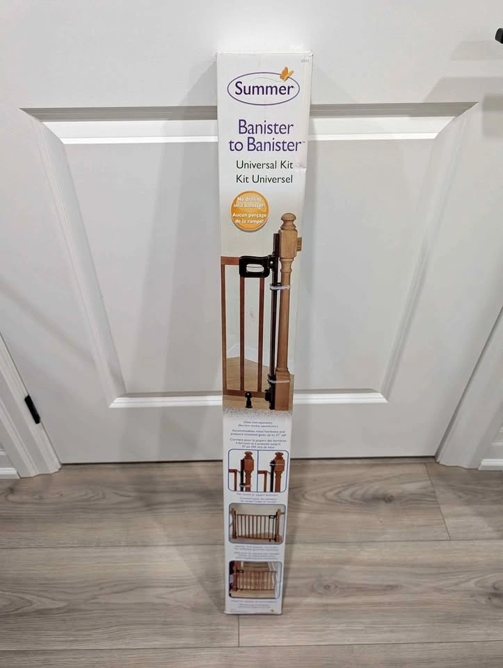 Save your banisters from installation of baby gates, without having to drill into them. You can even use this item for wall to banister installation as well. Check the pictures on the box for more options. Brand new item.