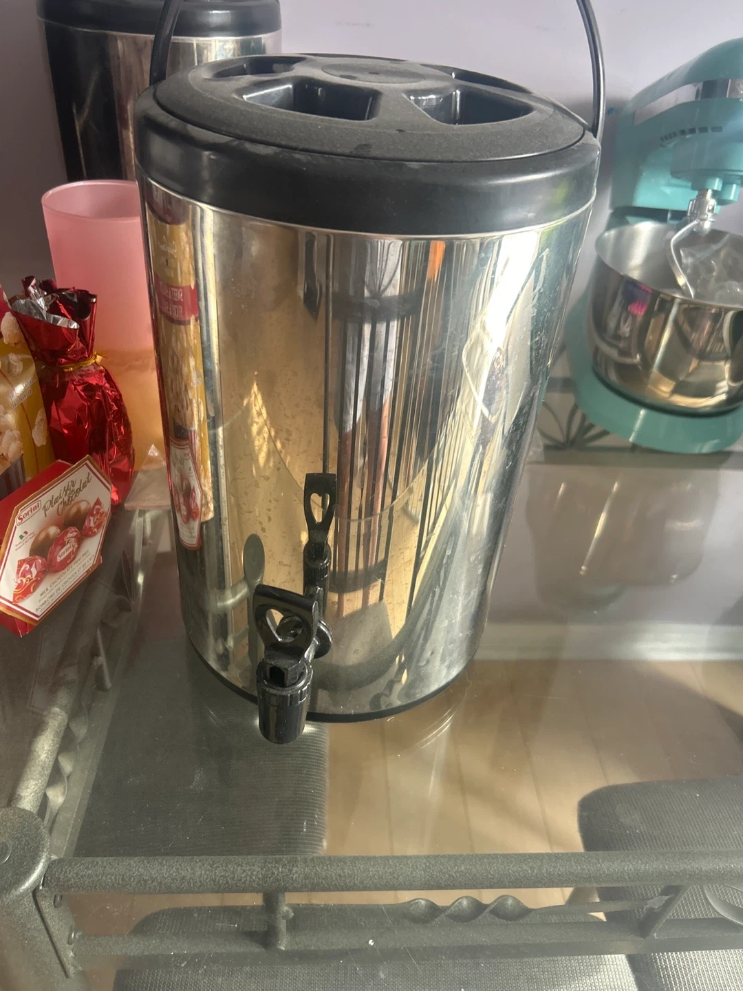 This stainless steel beverage dispenser is great for parties and events. It's made of durable stainless steel and has a convenient spigot for easy pouring. Holds a large volume of liquid, perfect for keeping drinks cold or hot for hours. there are two of them