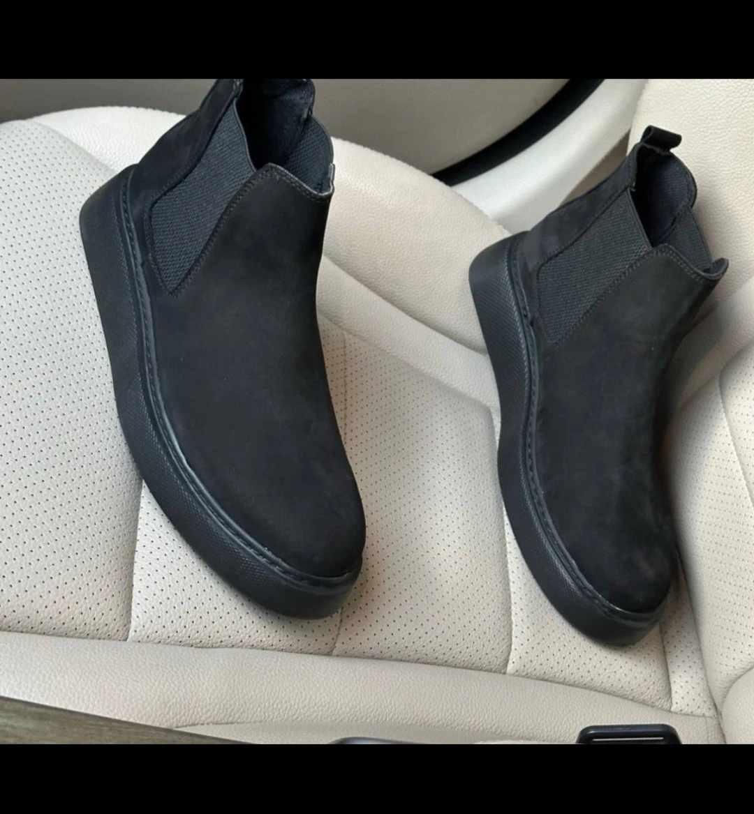 Bottes chelsea unisexe en suède avec une semelle épaisse en gomme ou en cuir et des panneaux élastiques sur les côtés. Disponibles en plusieurs couleurs. Un style moderne et confortable pour toutes les occasions.