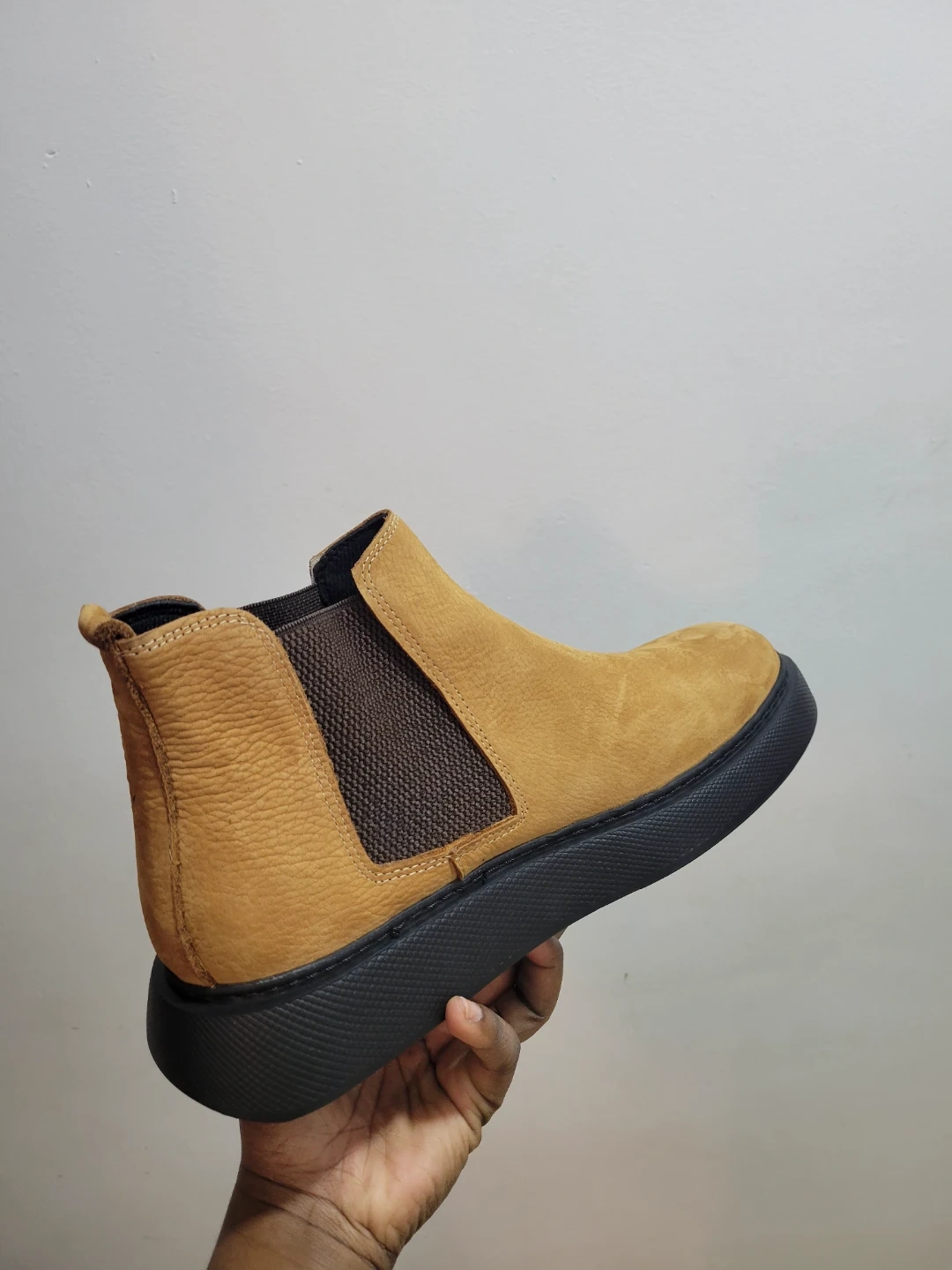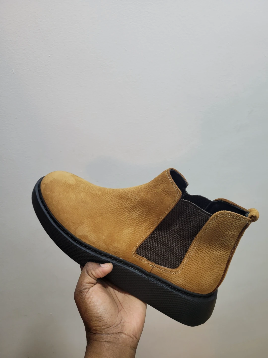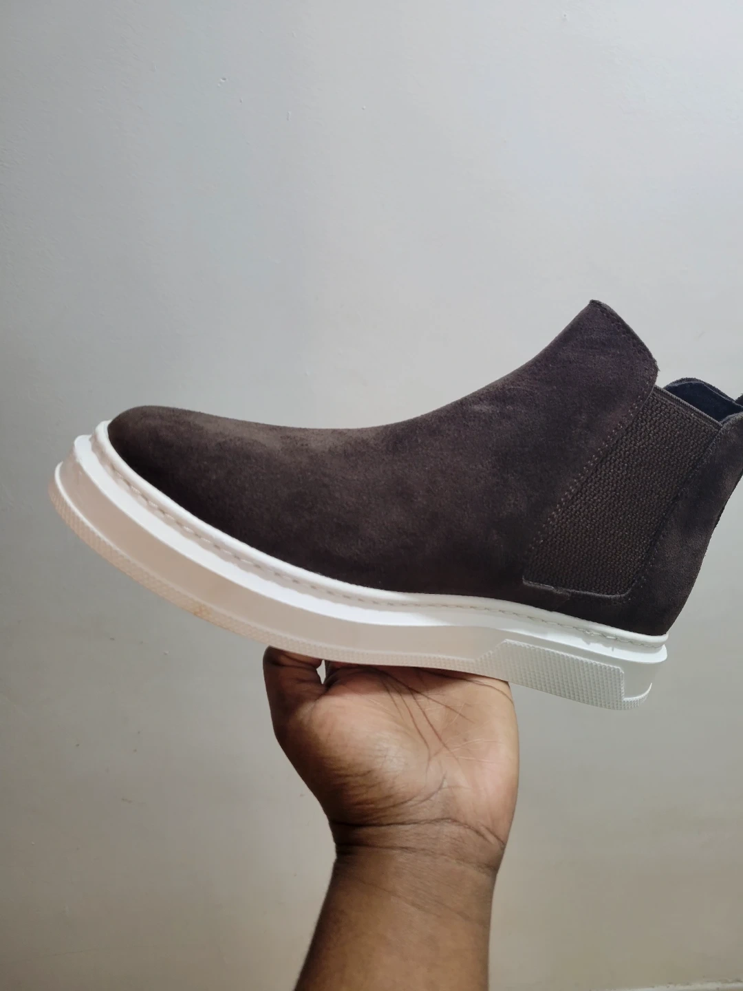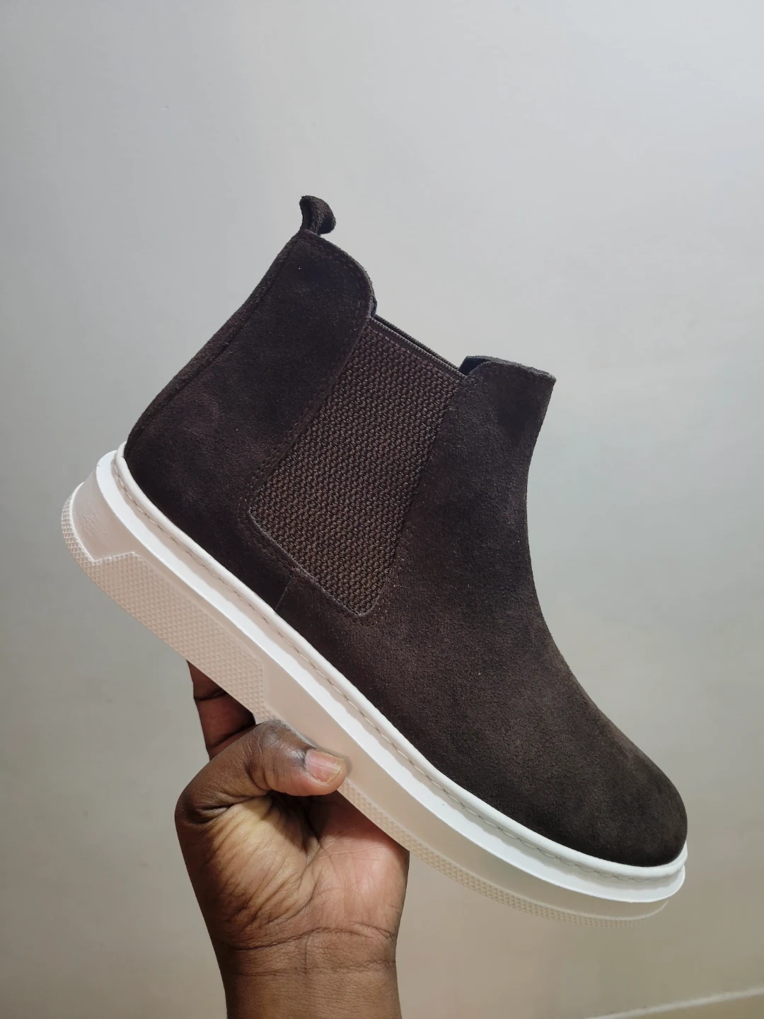 Bottes chelsea unisexe en suède avec une semelle épaisse en gomme ou en cuir et des panneaux élastiques sur les côtés. Disponibles en plusieurs couleurs. Un style moderne et confortable pour toutes les occasions.