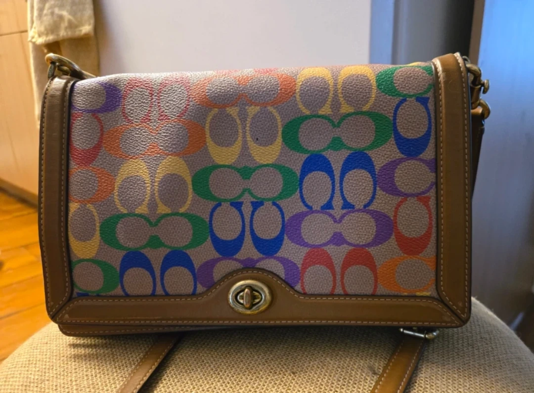 Authentic Coach Pride purse (2022)-- the original rainbow. Vibrant, good shape, lots of storage and secure closure. I love it, am just looking for something with more inclusivity in the design.