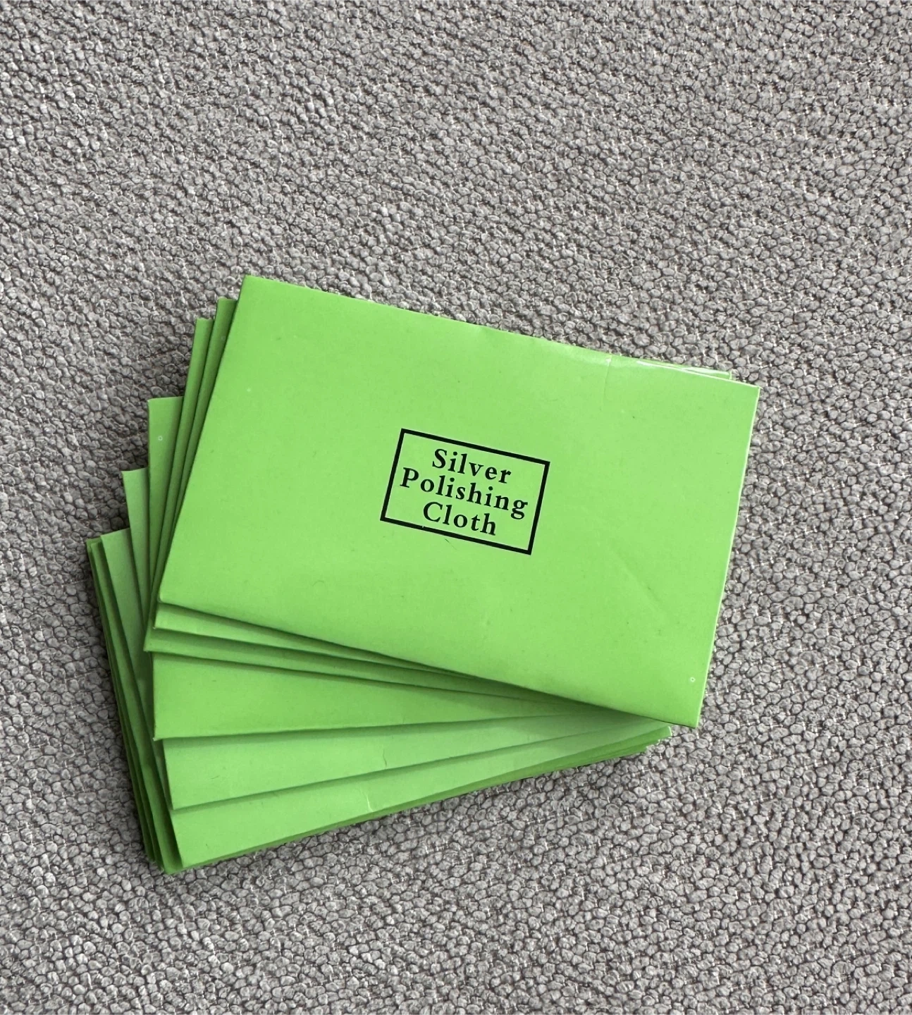 These are silver polishing cloths. They're great for keeping your silver shiny. They come in a pack of five and are lime green in colour.