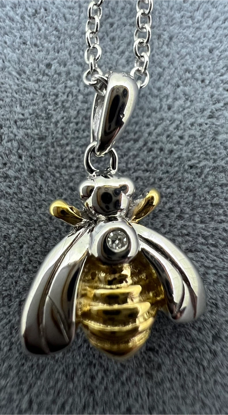 Charming bee pendant with small genuine diamond accent (0.01 ct)