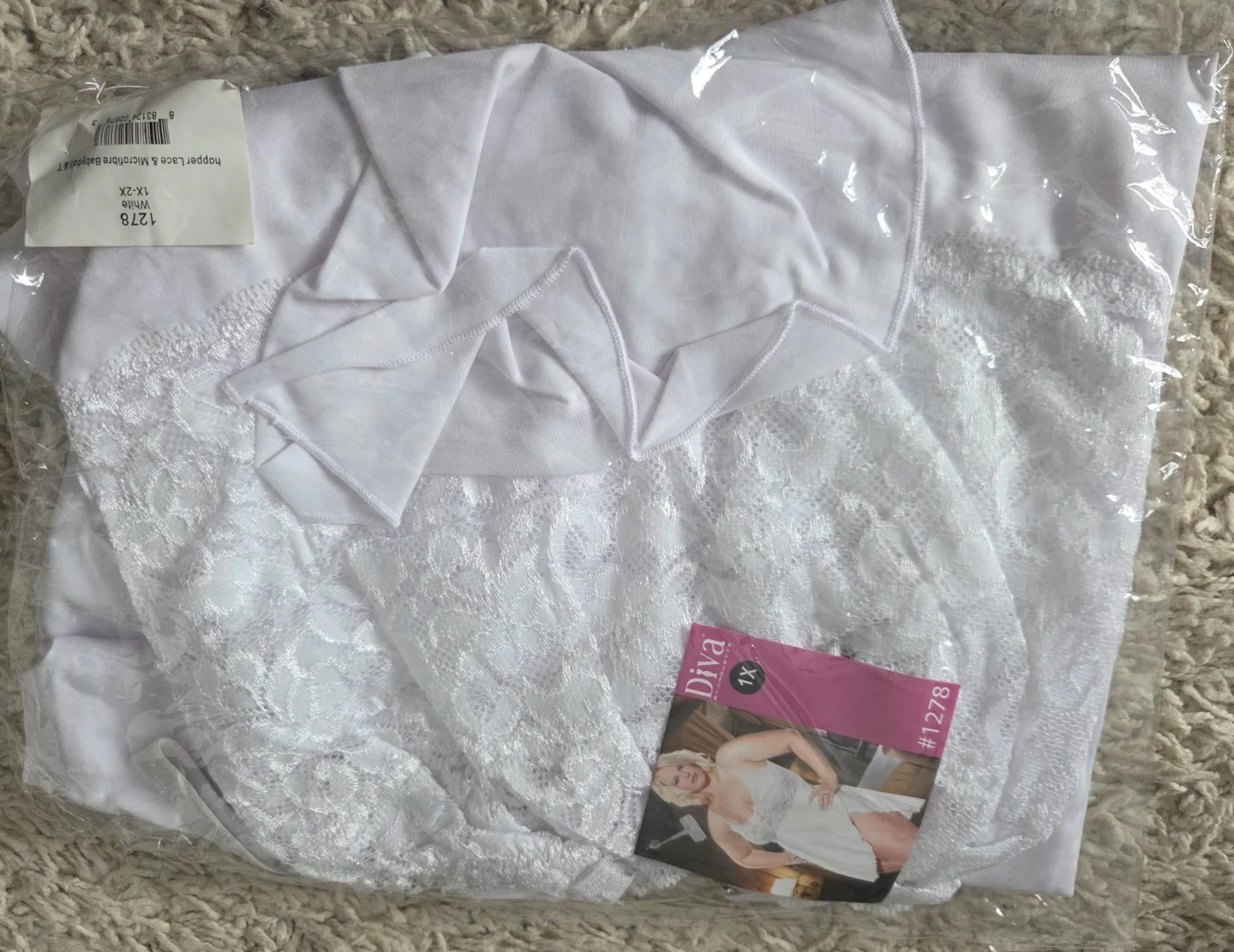 This Diva by Coquette babydoll set features lace and microfibre. It's in white and size 1X. New in package.