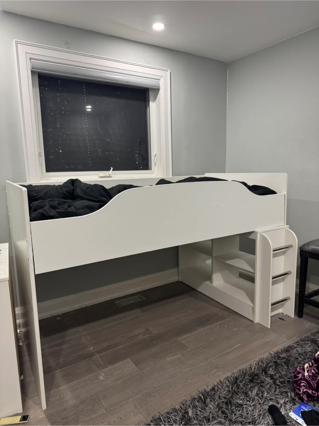 White Loft Bed with Shelves and Ladder