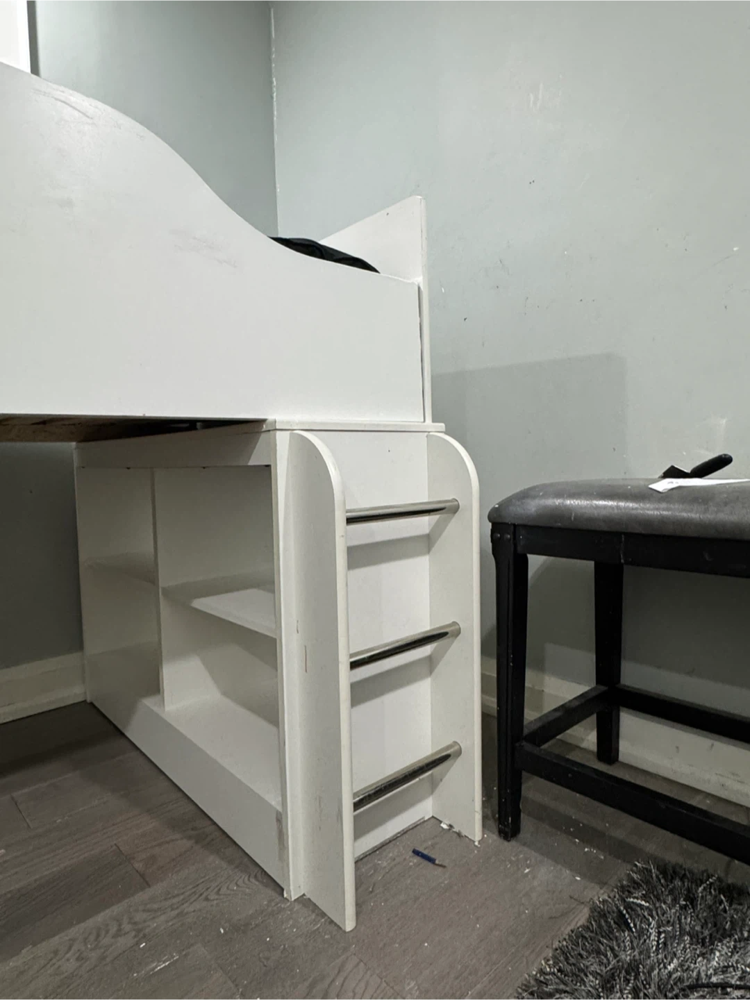 White Loft Bed with Shelves and Ladder
