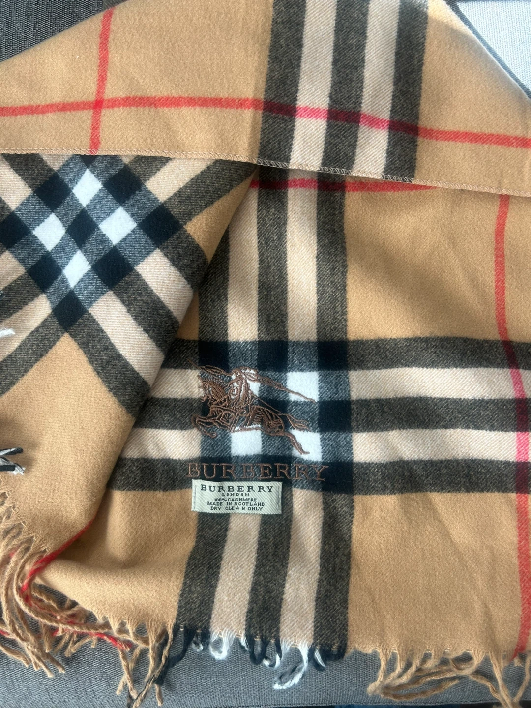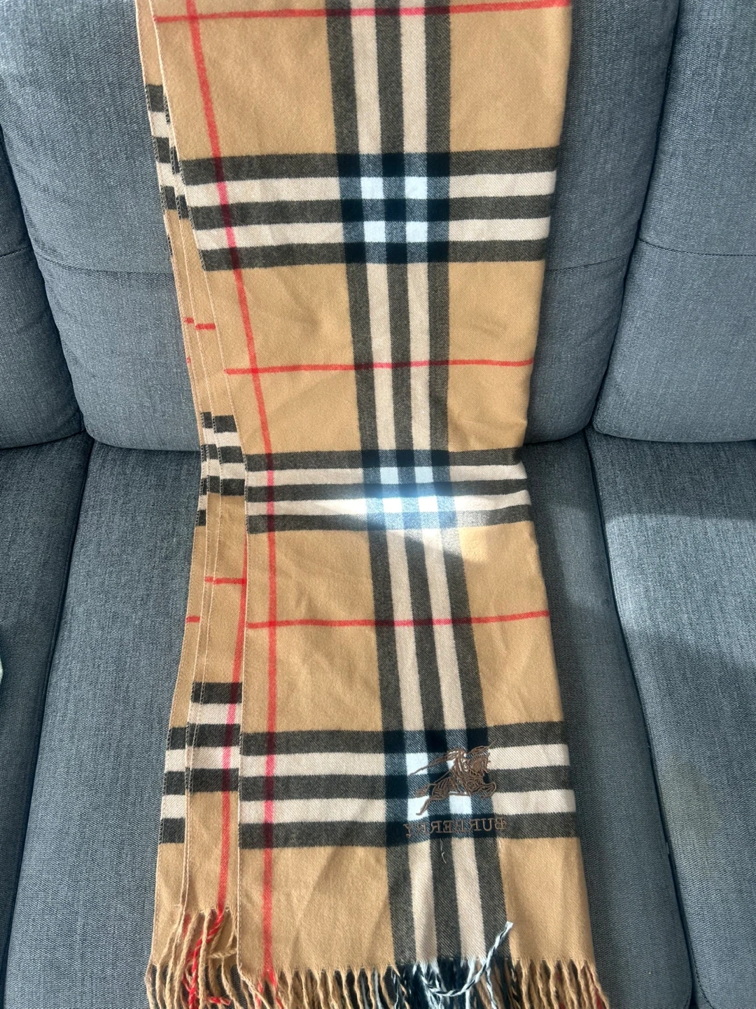 This isn’t a genuine Burberry scarf; an excellent dupe!