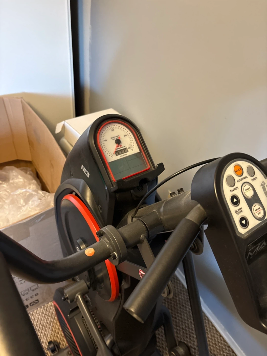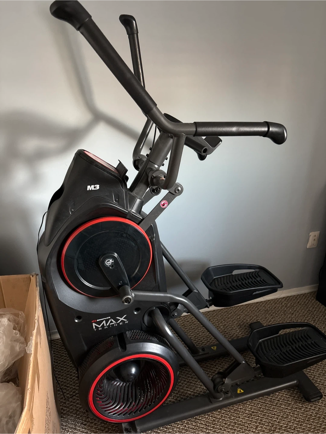 This Bowflex M3 Max Trainer is a compact elliptical machine. It features a digital display to track your workout progress. This machine is great for at-home cardio.