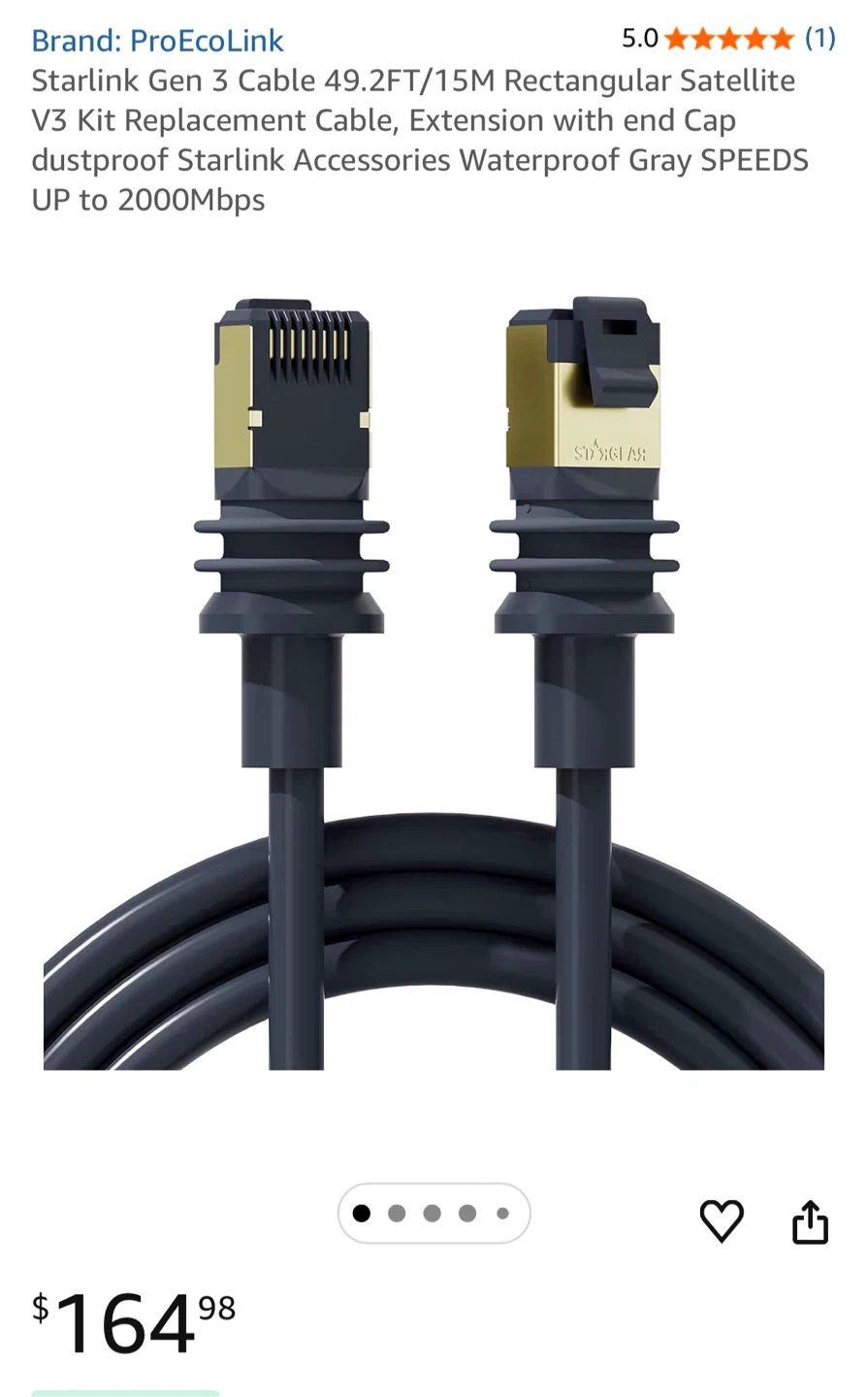 New! Starlink Gen 3 Cable 49.2FT/15M Cat 6 Ethernet Extension