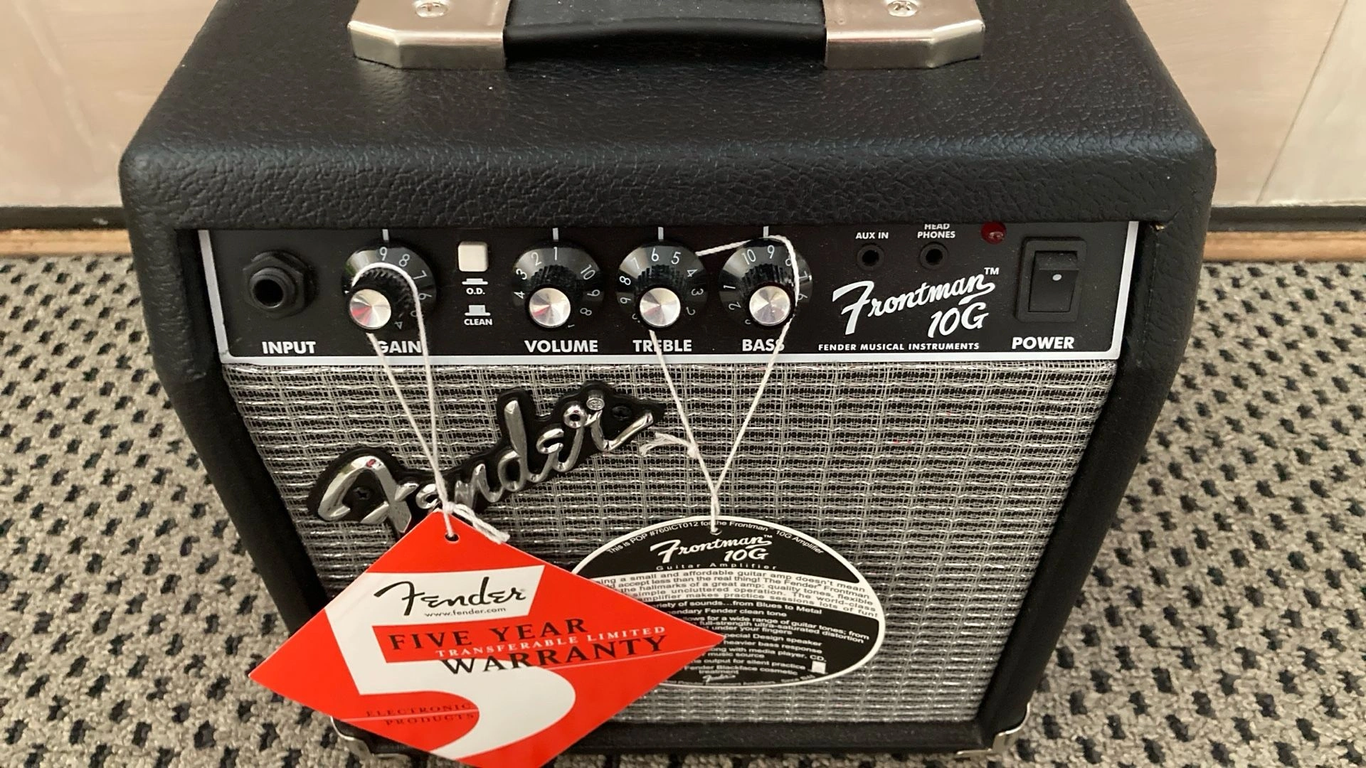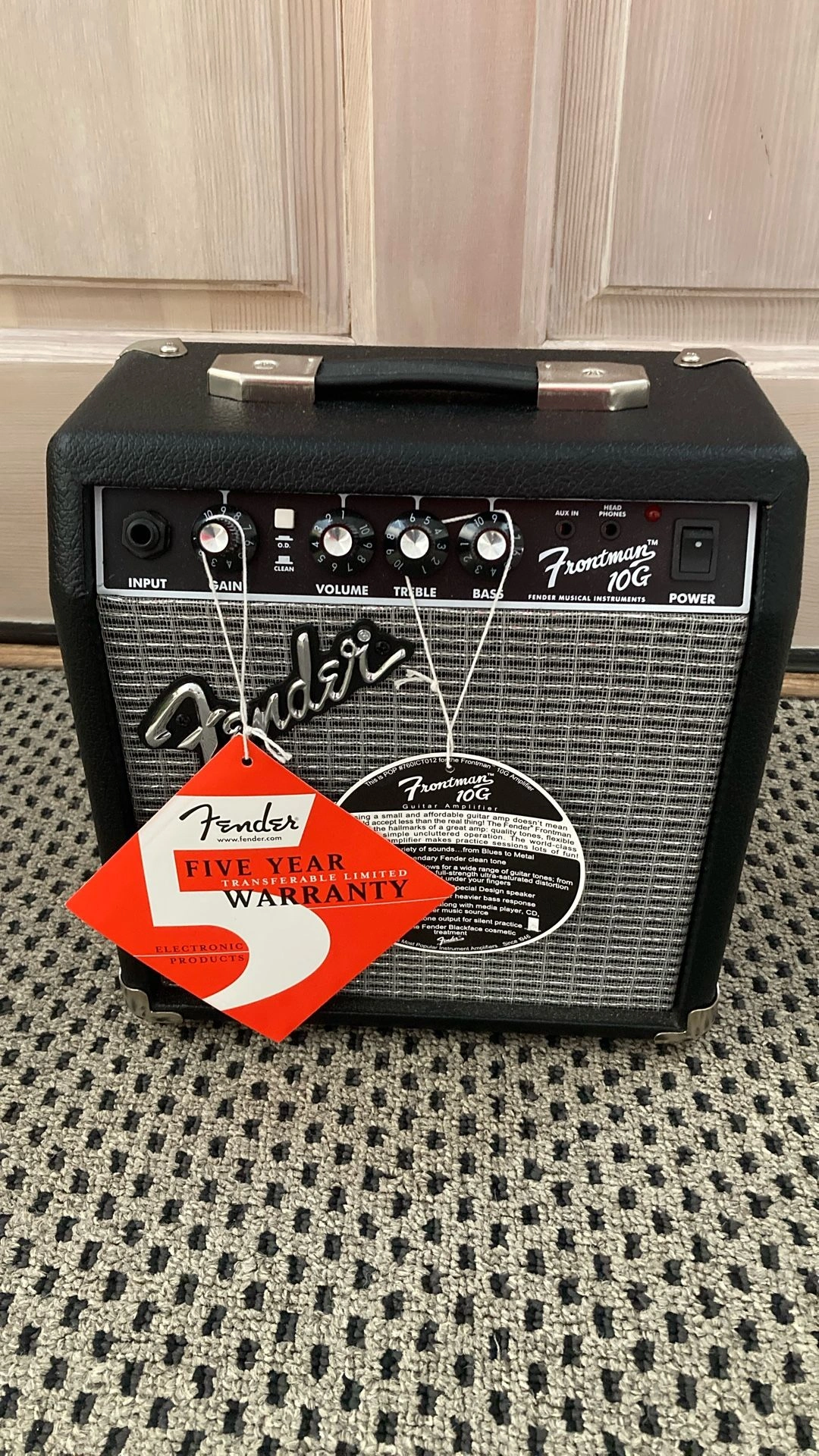 Fender Frontman 10G Amplifier. 28 watt, 1-channel, 1x6” Guitar Combo Amplifier with Stereo Aux Input and Headphone Jack. Downsizing and have several other amps listed if you want something larger. Brand: Fender.