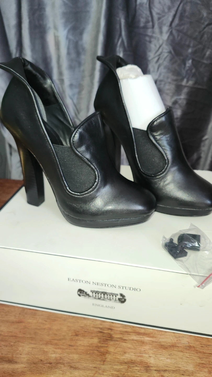 Leon Max Easton Weston Studio Black Leather Heels Size 7M