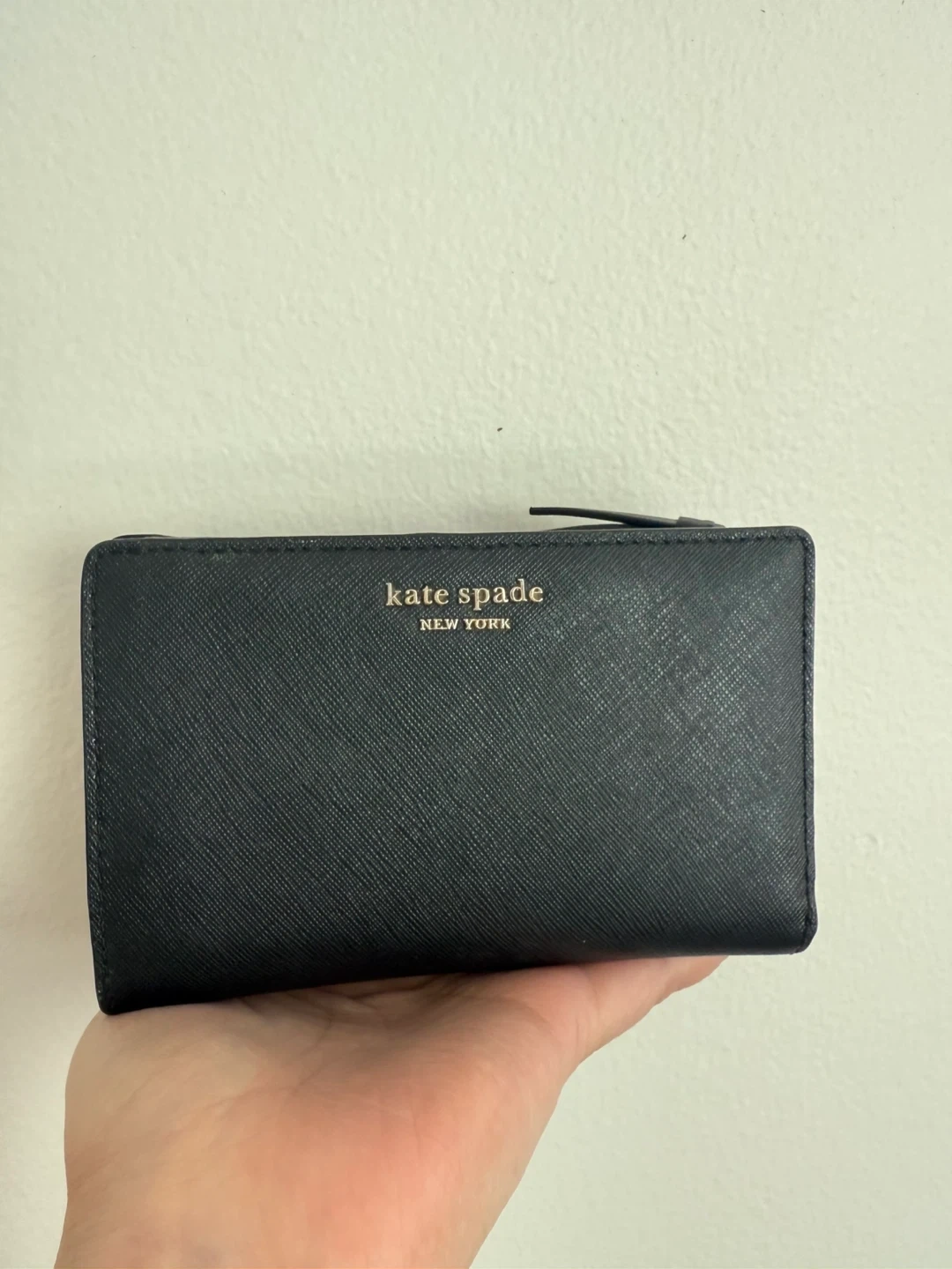 Buy & SellKate Spade WalletKate Spade Wallet$32Black Kate Spade wallet with zip-around closure. Multiple card slots and interior pockets. Saffiano leather material.ConditionLike newSizeSmallBrandKate SpadeWHERE TO MEETWestonView MapSELLERverifiedKristinWeston600 reviews0 chats·0 favorites·18 viewsSEND CHAT TO SELLERHi Kristin! I’m interested in your listing.Hi Kristin! I’m interested in your listing.Get the Karrot app to chatSign In to chat