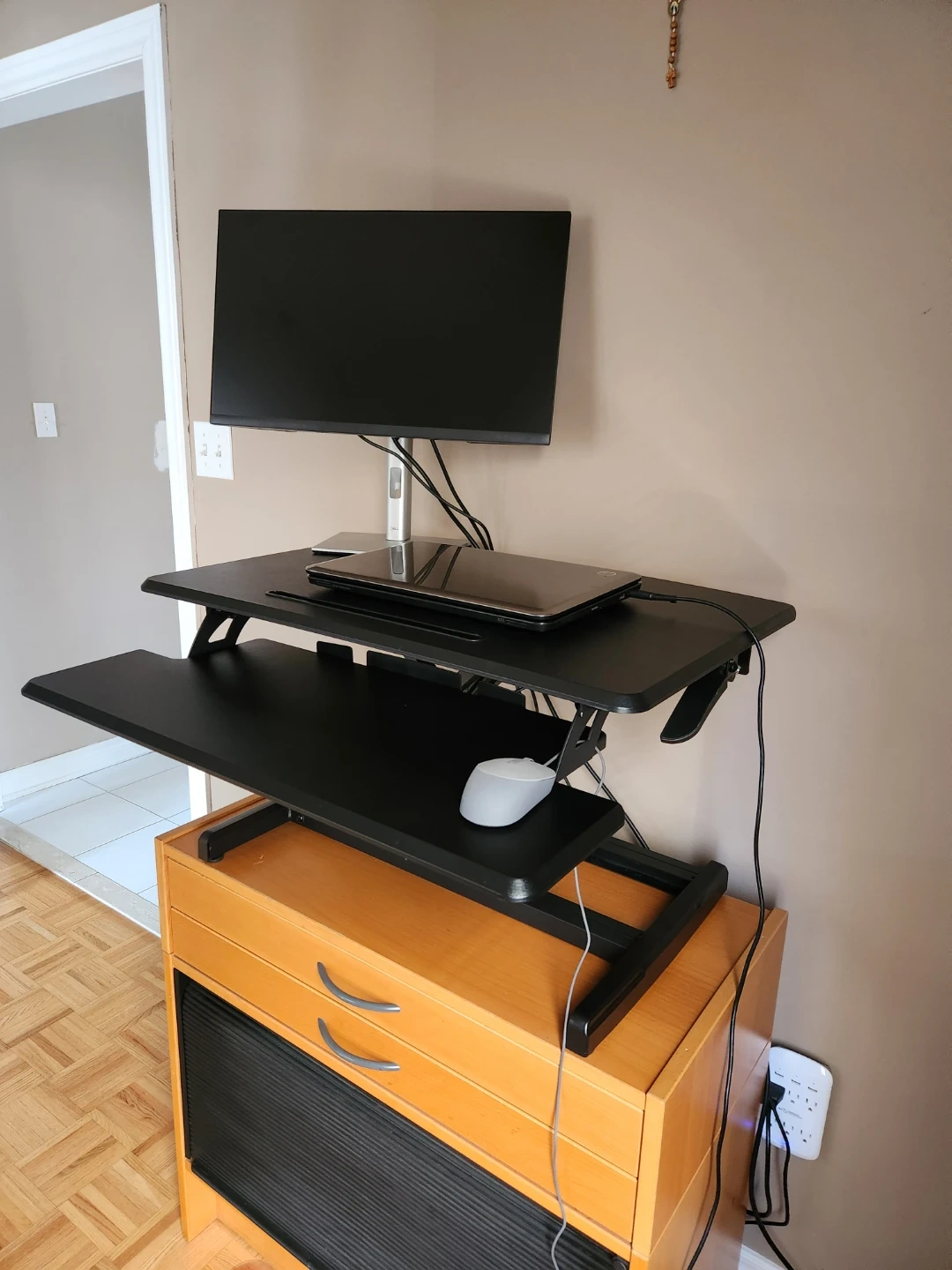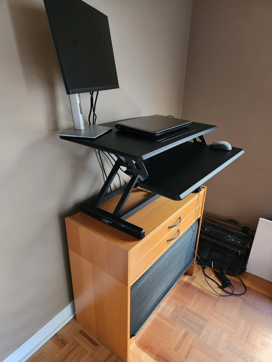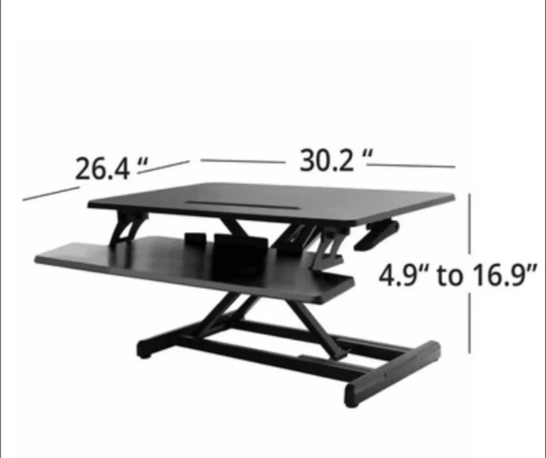 Seville Classics Airlift Height Adjustable Sit Desk Converter Workstation Standing Ergonomic Dual Monitor Riser with Keyboard Tray, Compact 30", Black. Excellent condition, rarely used. Below I've also included a link to a similar item at Staples