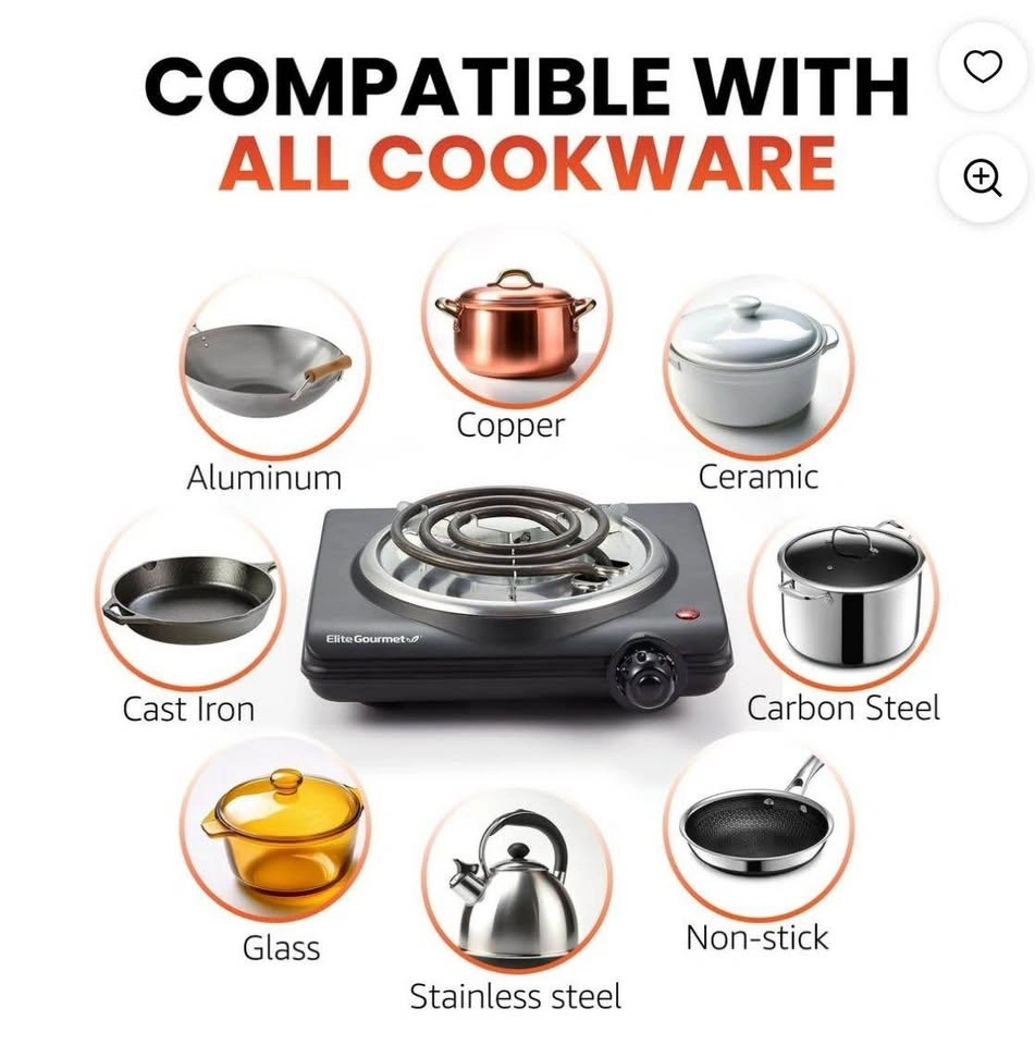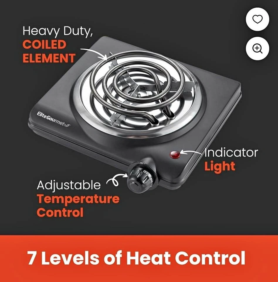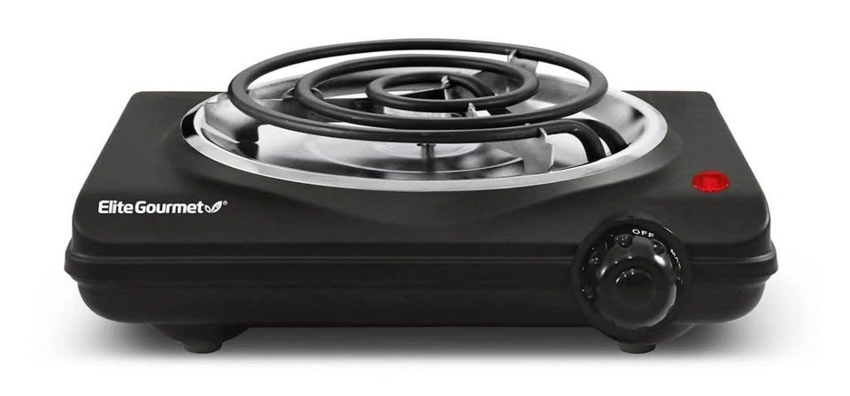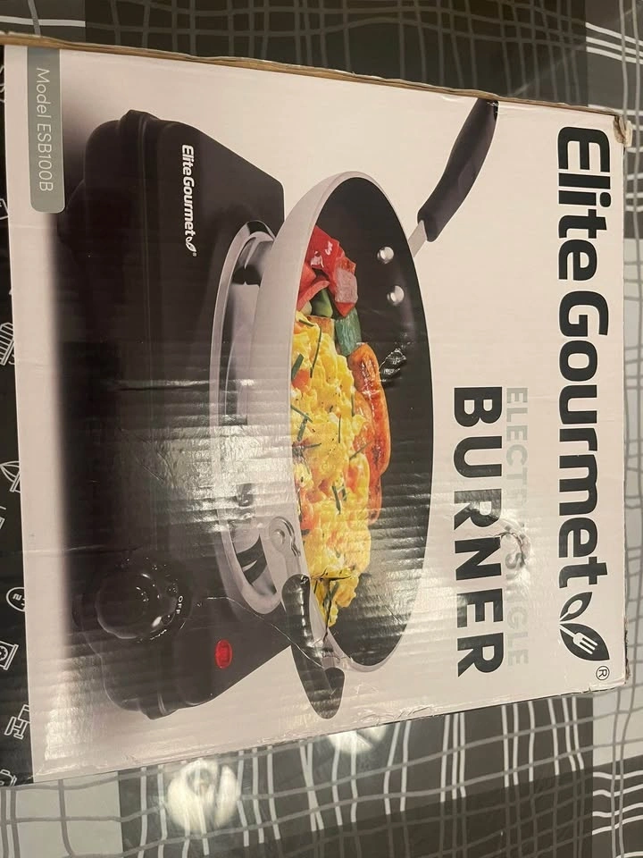 Elite Gourmet ESB100B Countertop Single Coiled Burner Electric Hot Plate. Features temperature control and an indicator light. Easy to clean, black color. DOOR PICKUP IN BURLINGTON. CASH ONLY. No delivery. First and final sale: no return, please check the product during pickup to ensure it's to your satisfaction. Check out my other listings for brand new items for reduced prices ✨