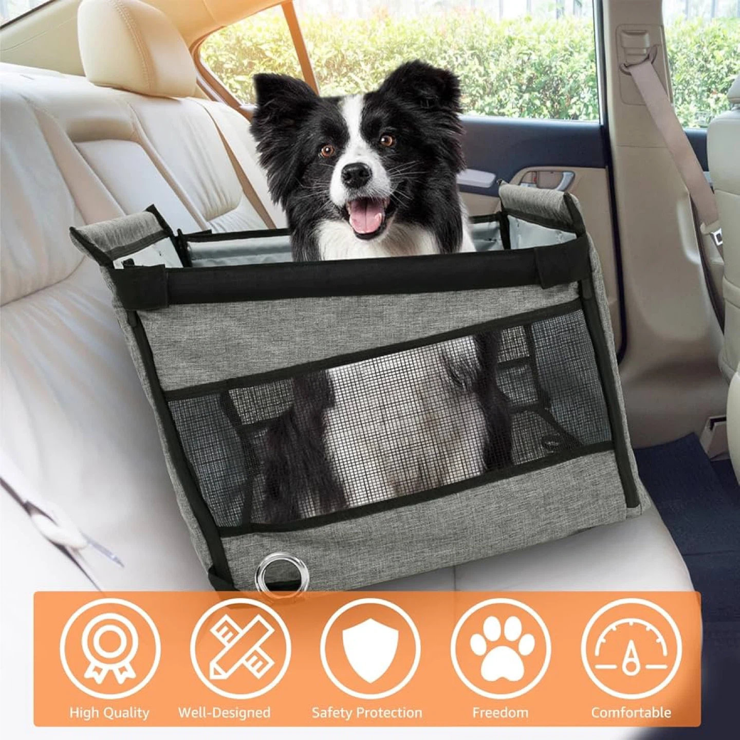 Dog Car Seat, Pet Seat with Waterproof Pad, Harness Hook, Breathable Mesh, Adjustable Backseat Safety Belt, Foldable Pet Car Seat Carrier for Travel Suitable for Most Car Deluxe Interactive Pet Seat