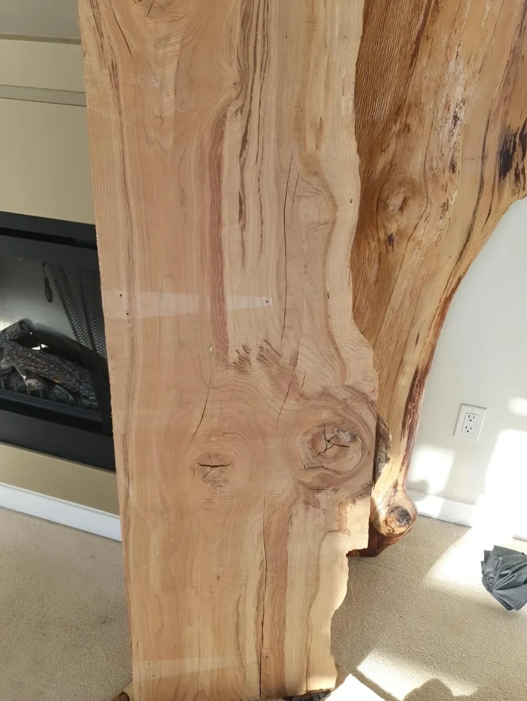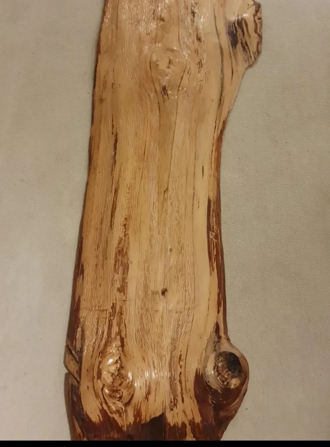Unique live edge wood slab, showing natural grain patterns and knots. Wood material. Rustic decor!