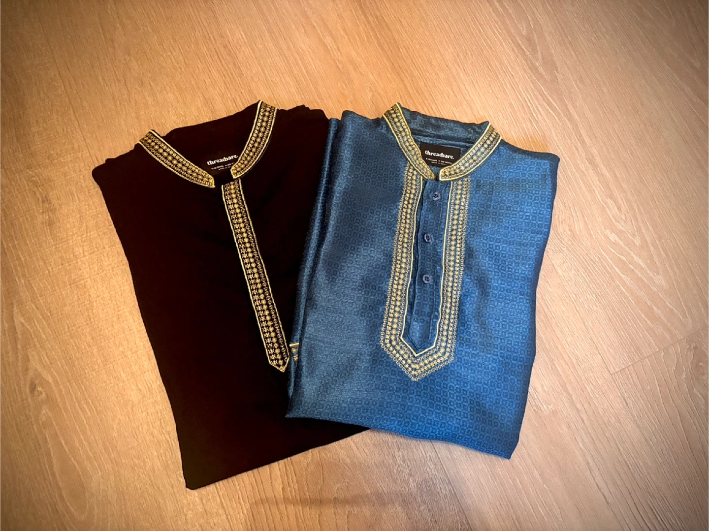 Selling two brand new boys Threadbare kurtas in excellent condition. These pieces feature beautiful gold embroidery and a classic traditional design, making them a great choice for cultural celebrations, Eid, weddings, or other special occasions. Originally priced at $55 for both
