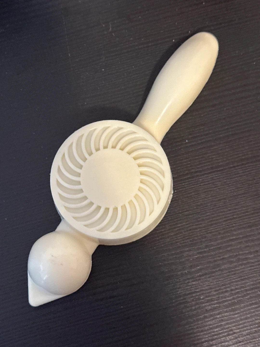 This is a vintage dessert mold, perfect for creating decorative pastries or candies. It features a flower and ridged design for intricate shaping. Its unique handle makes it easy to use for all your baking projects!