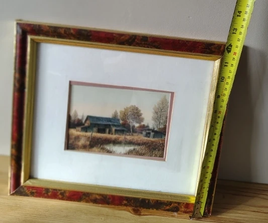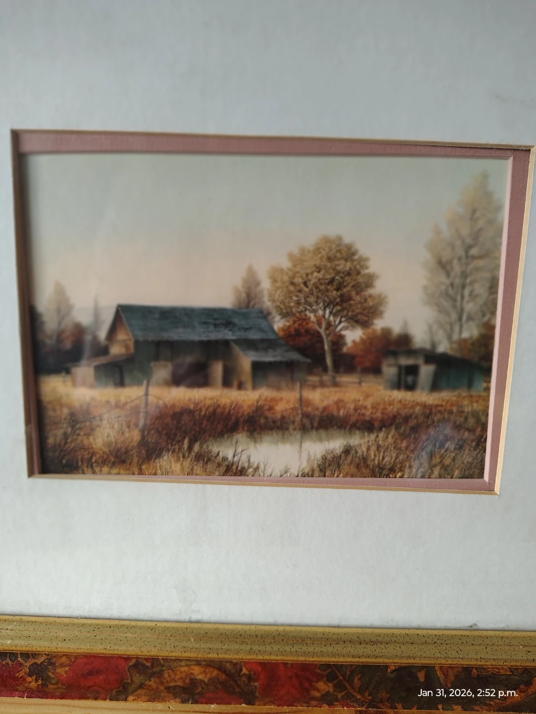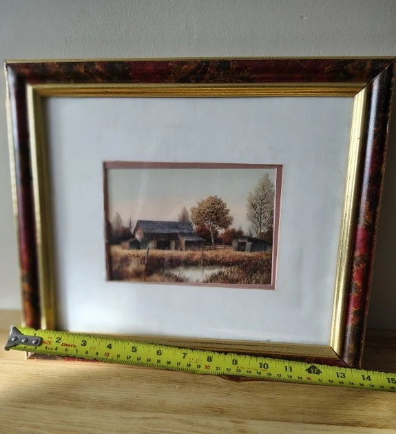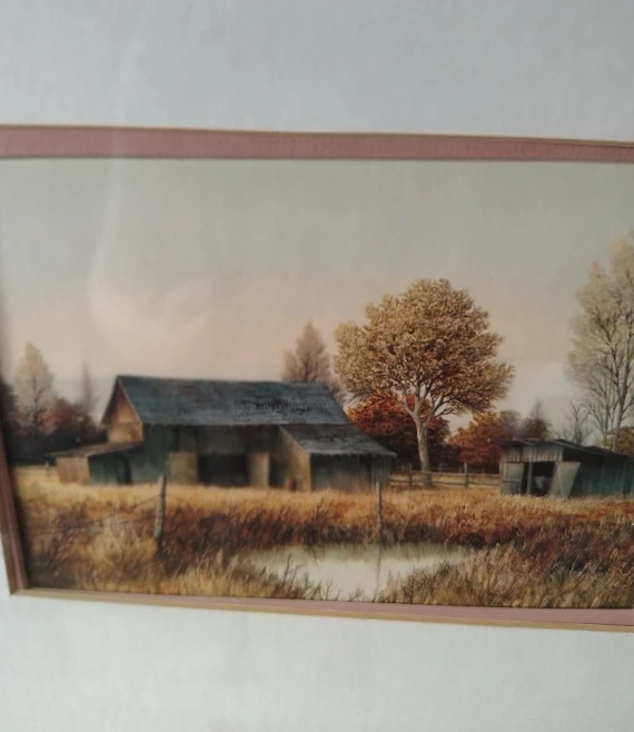 • The other is a barn / farmhouse landscape print with no visible artist attribution.