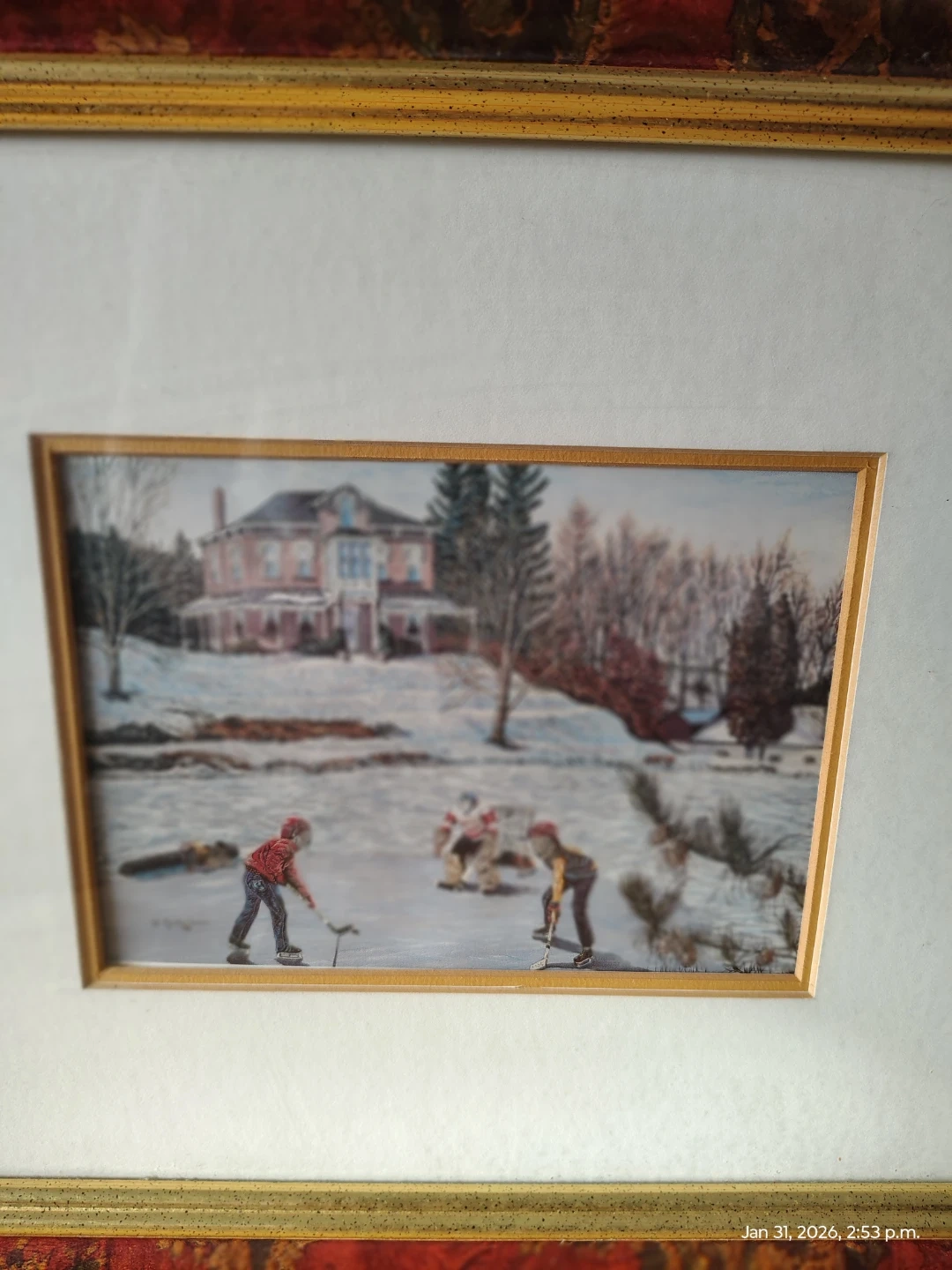 • One is a winter outdoor hockey scene, credited and dated 1988 on the print. Linda Cowan