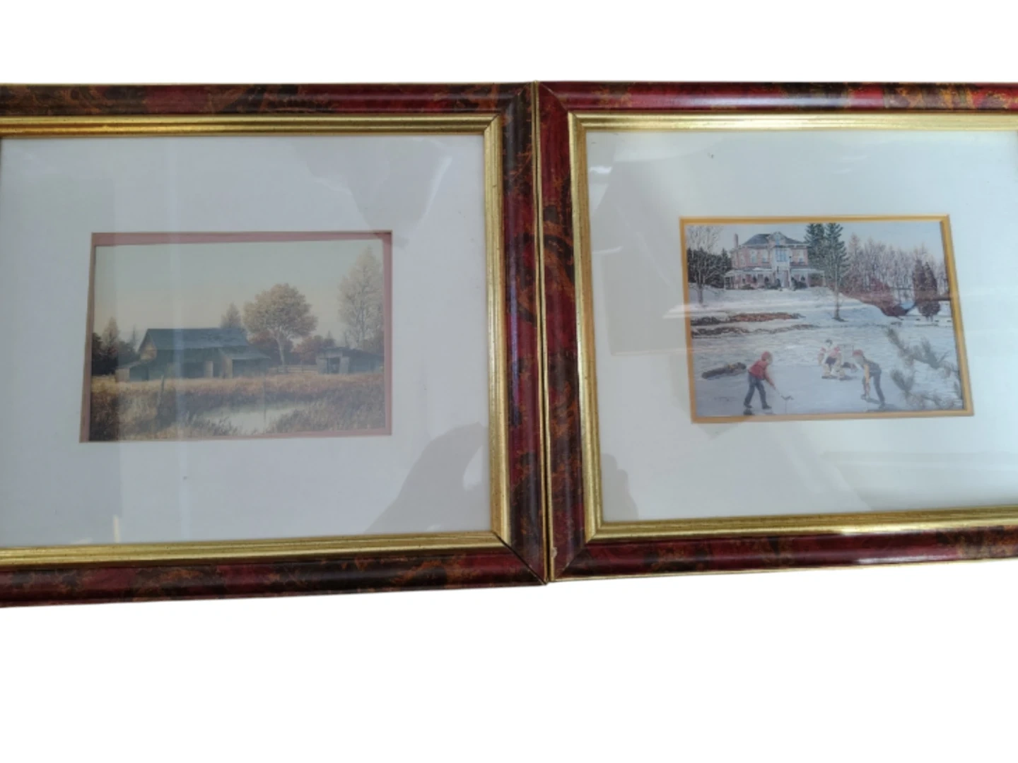 Framed Art Prints - Rural Barn Scene & Winter Skating