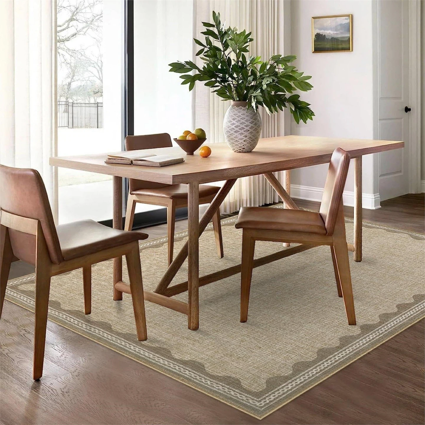 Garvee Modern Jute 9x12 Scalloped Washable Area Rugs for Living Room, Solid Rug for Bedroom, Non Slip Throw Mat With Rubber Back, Soft Dorm Nursery Carpet for Dining Room