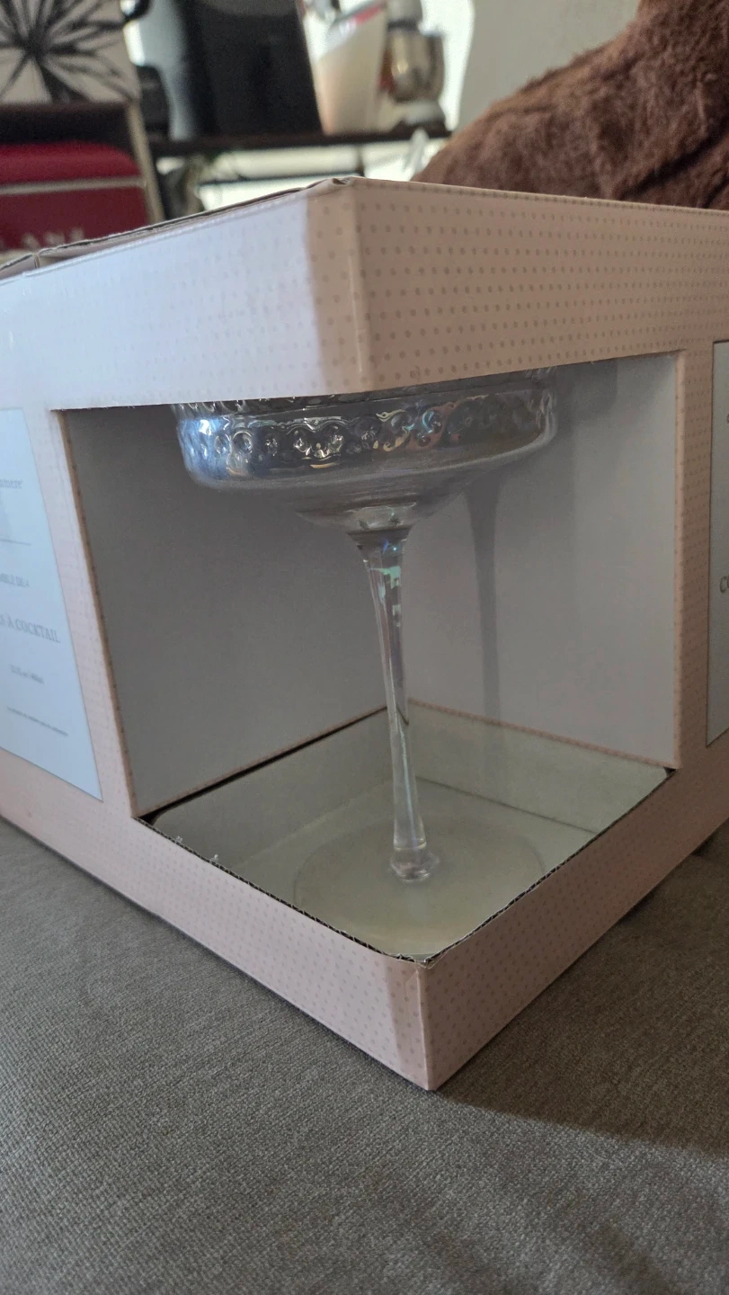 Here's a set of 4 cocktail coupe glasses from Cupcakes and Cashmere. Each glass holds 13.52 oz or 400ml. They're perfect for serving drinks at your next get-together!