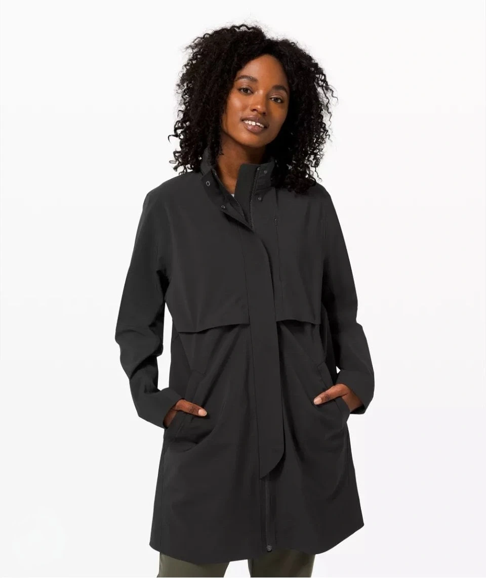 This sleek water-repellent coat is built for breathability. A perforated liner lets air flow when your day heats up.