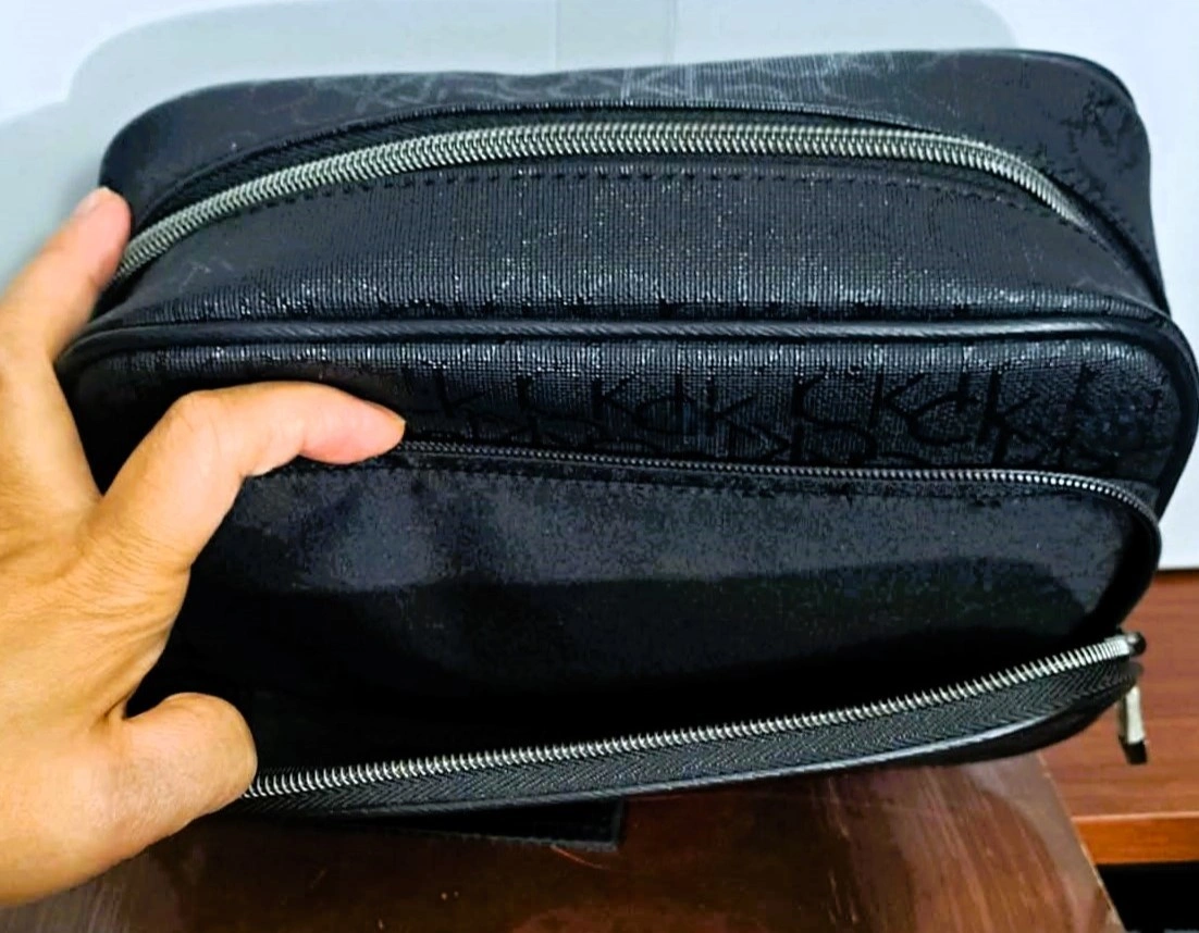 Travel in style with this brand-new, genuine Calvin Klein dopp kit. Perfect for organizing grooming essentials or as a sleek tech or general carry-all bag. This compact and structured case combines durable construction with the iconic CK monogram design.
