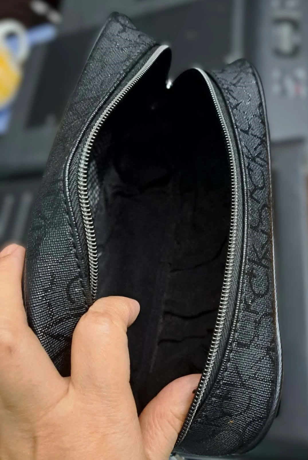Travel in style with this brand-new, genuine Calvin Klein dopp kit. Perfect for organizing grooming essentials or as a sleek tech or general carry-all bag. This compact and structured case combines durable construction with the iconic CK monogram design.