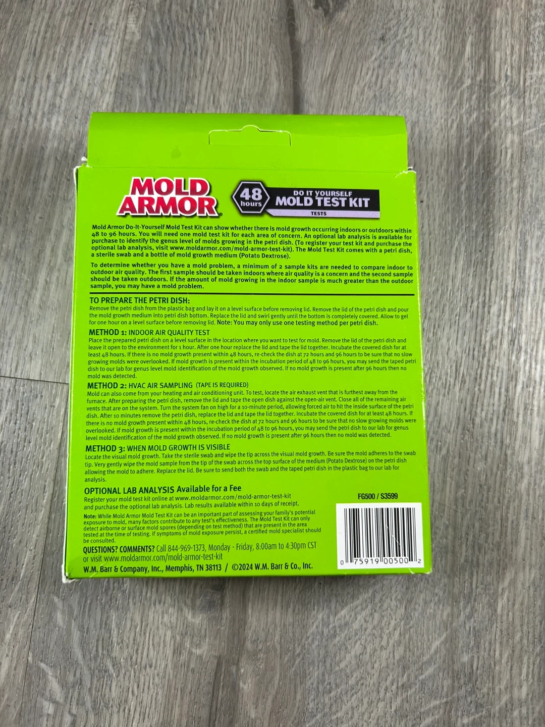 This kit helps you test for mold growth indoors or outdoors. It shows mold growth within 48 hours and is safe and easy to use. Optional lab analysis is available for a fee.